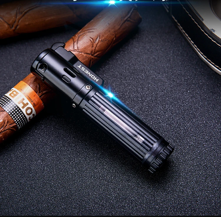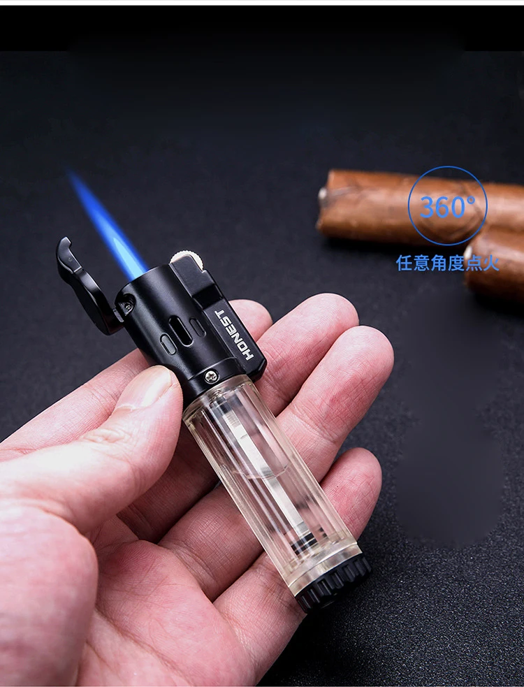 Мини-Кремниевая зажигалка для кемпинга, выживания, ветрозащитная газовая зажигалка, портативная сигарета, сигара Бутановая Зажигалка, маленький распылитель синего пламени