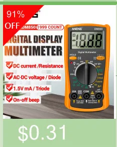 Особенности:1. Цифровой ЖК-экран, максимальное значение дисплея 1999.2. Мультиметр имеет четкий, легко читаемый ЖК-дисплей, белый задний светильник.3. Портативный и компактный дизайн.4. Хранение данных.5. Отображение символа низкого напряжения.6. Фоновый светильник.7. Защита от перегрузки n.8. Измерение проходит.9. Диод: Да10. Аудио: Да11.Измерение прохода: Да12.Хранение данных: Да13.Фоновый светильник: Да14.Максимальный дисплей: 1999Спецификация:1. Напряжение постоянного тока: 200мВ-2-20-2000-600в плюс или минус 0.5%2. Напряжение переменного тока: 200-600 в плюс или минус 1.0%3. Постоянный ток: 2 м-20 м-200 м-10A + 1.8%4. Сопротивление: 200-2-20 k до 200 k, 2 k m Ω plus или минус 1.0%5. Измерение температуры: термопара типа K, - 20 ℃ ~ 1300 ℃ (+ / - 3%)6. Измерение триода: (PNP/NPN Triode hFE)7. Измерение диодов: Да8. Пройти тест: Да9. Входное сопротивление: 1 м Ω10. Электрическая бассейн элемент питания: 9V, 6F22 (Батарея-это не прилагаются)11. Максимальный дисплей: 1999 (3 полужидкокристаллических дисплея)12. Размер дисплея: 45x18 ммПосылка включает в себя:Цифровой мультиметр ANENG AN8205C (аккумулятор не входит в комплект)-1 шт.2 x пара электронных зонда1 x Руководство пользователя