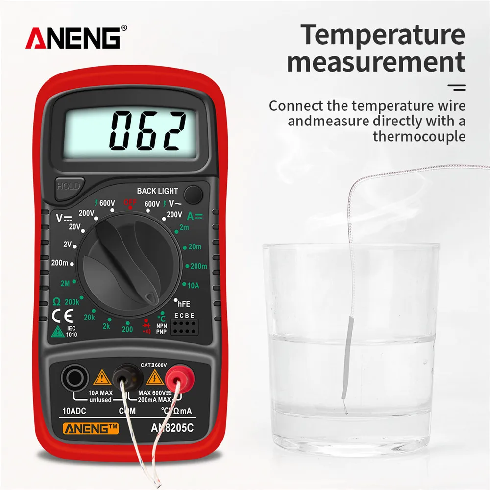 Цифровой мультиметр ANENGAN8205C, амперметр переменногопостоянного тока, вольт, Ом, тестер, измеритель температуры, измерительный инструмент с термопарой, ЖК-подсветкой