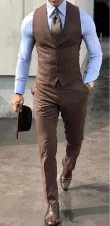 Мужской классический смокинг, пиджак, брюки, жилет, скромный коричневый, 3 шт.