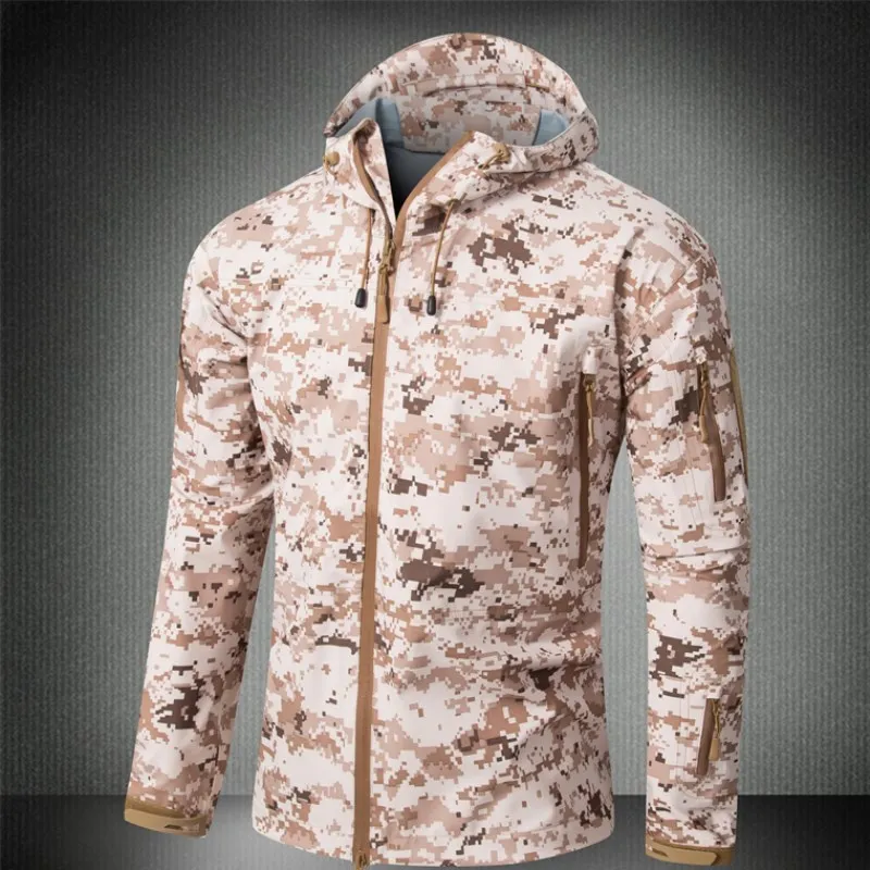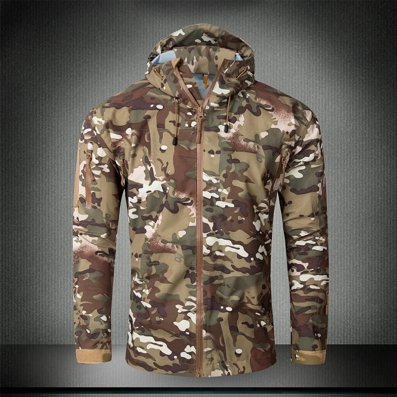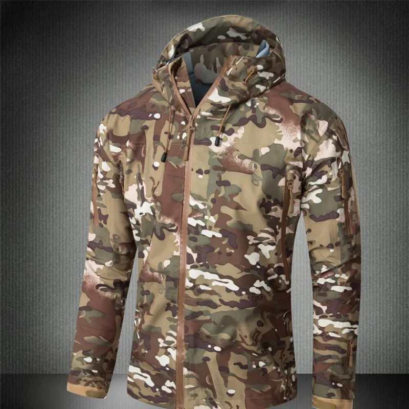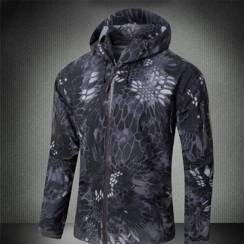 Уличная Водонепроницаемая жесткая оболочка Военная тактическая куртка для мужчин камуфляжная с капюшоном жесткая оболочка тонкое давление клей ветровка пальто Топы