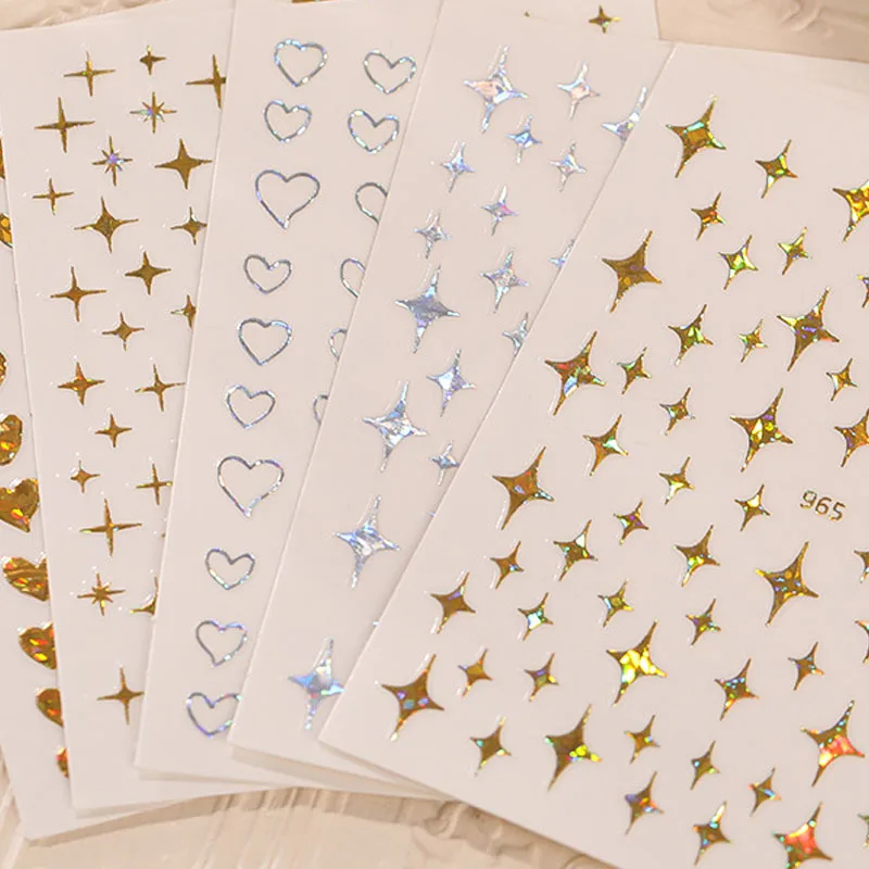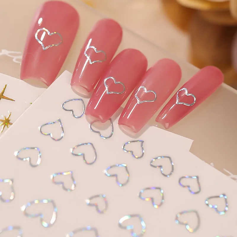 3D переводные наклейки для ногтей Акриловые самоклеящиеся голографические звездывишняСердце дизайнерские наклейки для салона Маникюр слайдеры обертывания D05