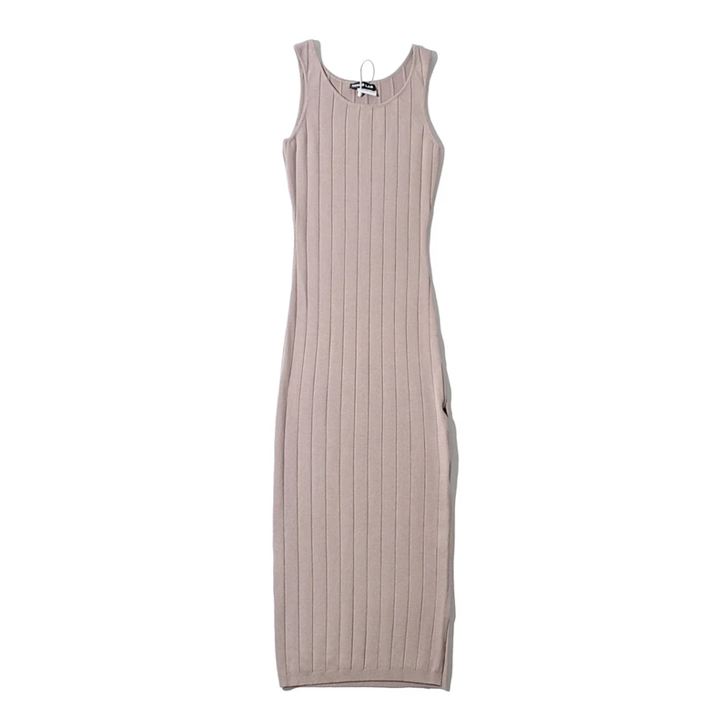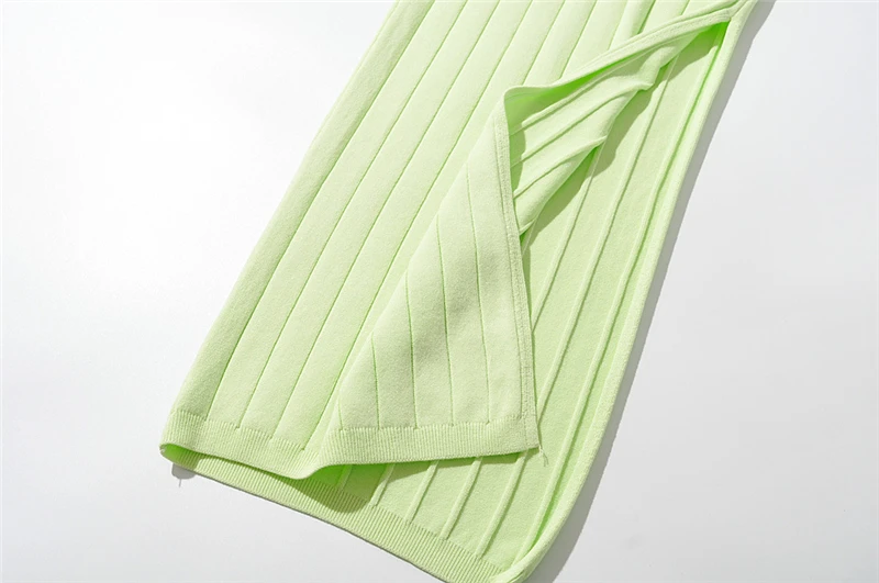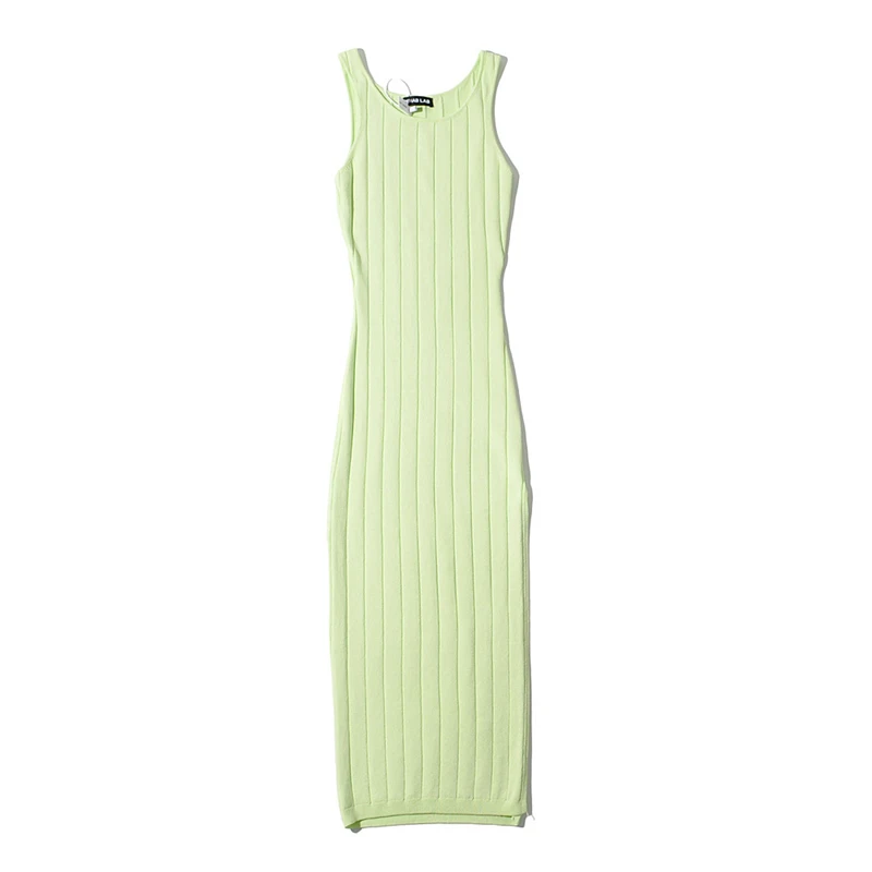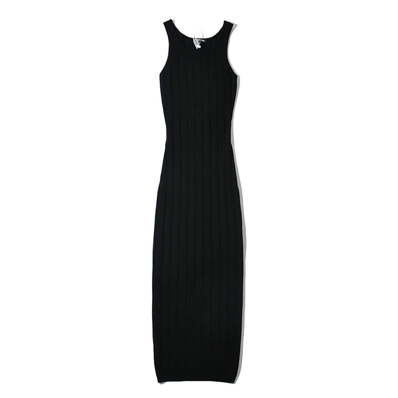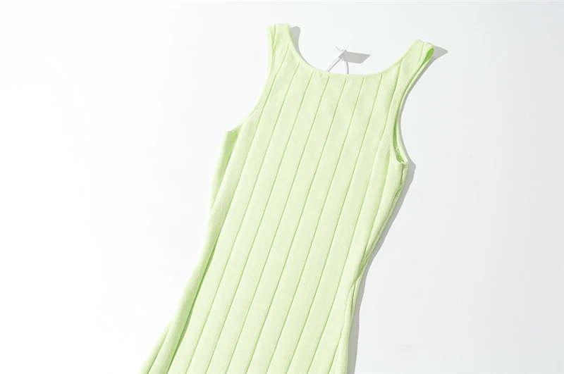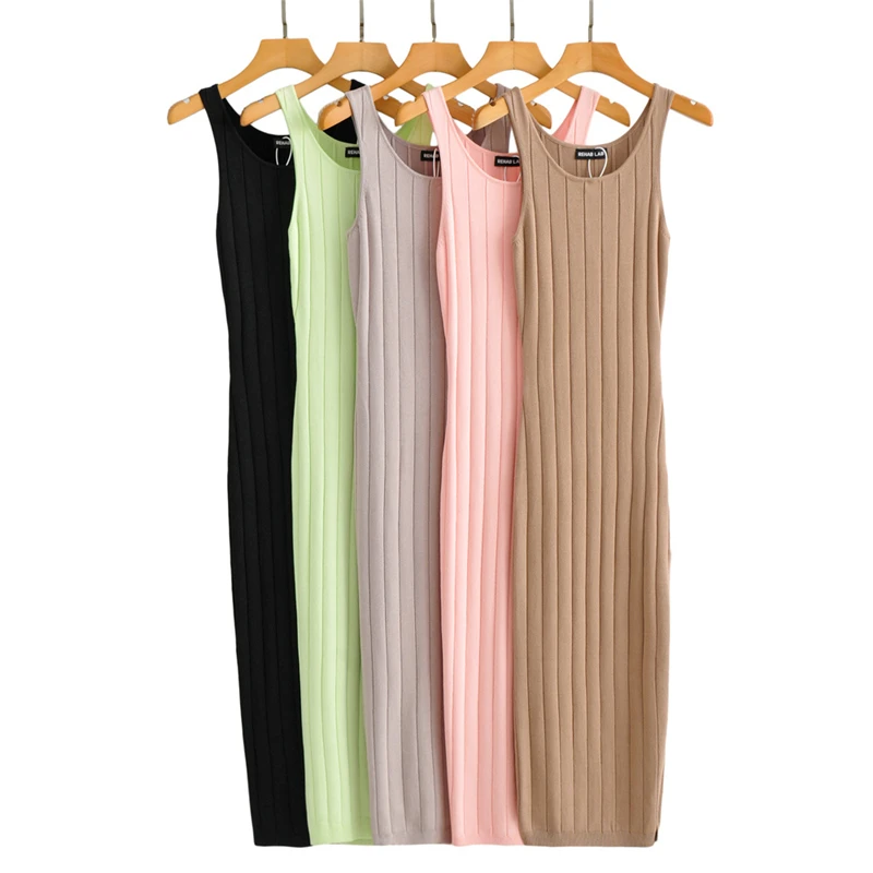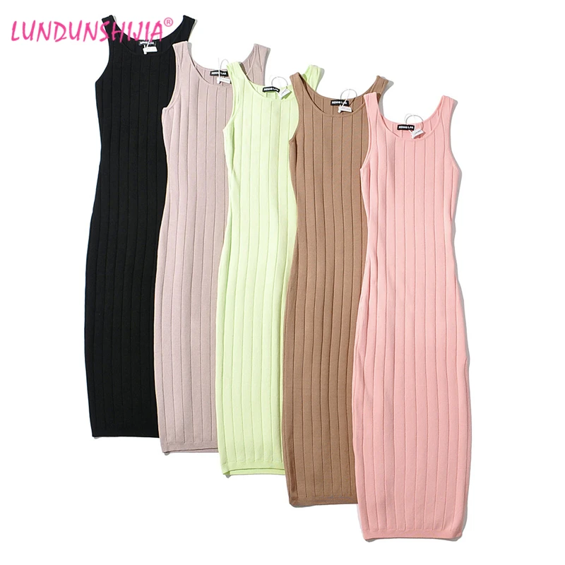 Платье LUNDUNSHIJIA женское трикотажное, элегантное облегающее однотонное платье-свитер с круглым вырезом и высоким разрезом, без рукавов, весна-лето 2021