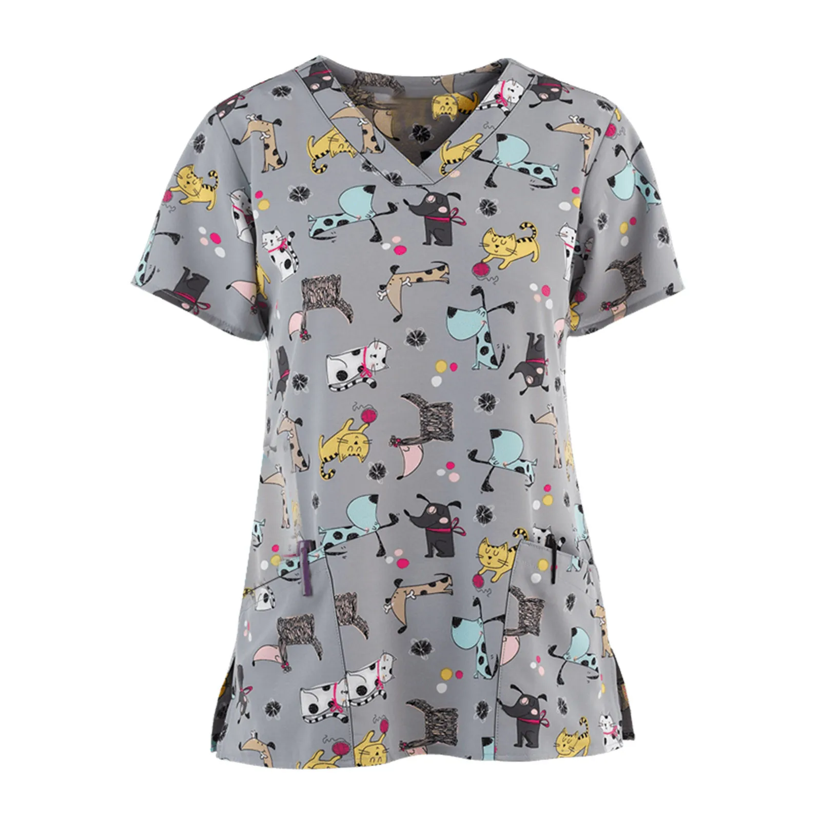 Женский топ с V-образным вырезом и коротким рукавом, рубашка с карманами, Рабочая Униформа, блузка