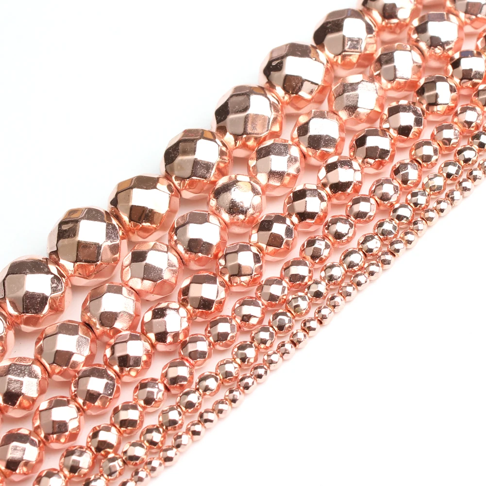 Натуральные камни родиевый розовый Золотой гальванический гематит Круглый Рассыпчатая минеральная бусины для браслетов "сделай сам" для изготовления ювелирных изделий 15 дюймов 2346810 мм