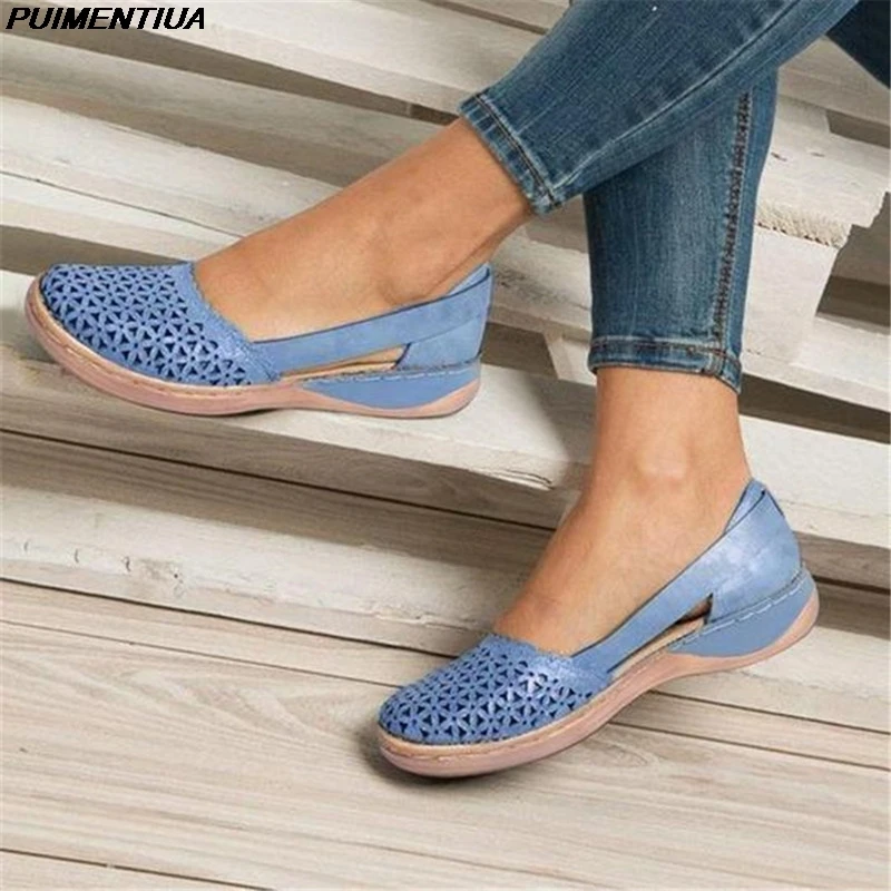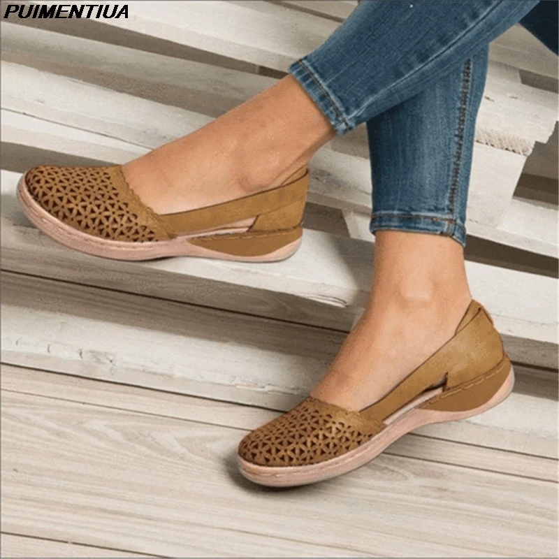 Сандалии Puimentiua женские кожаные, дышащие босоножки ручной работы, плоская подошва, поддерживающие тапочки в ретро-стиле, летняя обувь