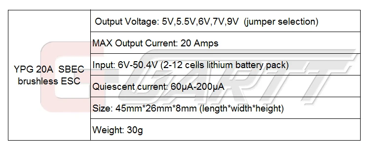 YPG 20A HV SBEC для радиоуправляемой модели самолета не требуется Программирование модель дистанционного управления игрушка YPG серии 20A SBEC бесщеточный ESC Использование: транспортные средства и игрушки с дистанционным управлением Материал: пластик Цвет: Рисунок coot Периферийные устройства/устройства дистанционного управления: ESC Принадлежности для инструментов: резка Детали RC и Accs: контроллеры скорости Характеристики четырехколесного привода: сборка Тип транспортного средства: вертолеты Использование: транспортные средства и игрушки с дистанционным управлением Обновленные детали/аксессуары: YPG 20A SBEC YEP 20A HV SBEC является обязательным для любой модели, где требуется чистая, надежная мощность для вашей электроники. Предлагая широкий диапазон входного напряжения 6 ~ 50 в, YEP 20A SBEC может использоваться практически с любым приложением от небольших моделей вплоть до 800 размеров вертолетов или больших газовых самолетов. Выходного напряжения выбирается по джемпер для детей от 5V, 5,5 V, 6V, 7V или при напряжении 9 в эксплуатации. Кроме того, этот блок оснащен двойными выходными выводами, которые не только обеспечивают избыточность мощности, но и распределяют нагрузку по току над двумя комплектами проводов, чтобы убедиться, что вы не вставляете слишком много Ампер через один свинец. Особенности: Переключение BEC Высоковольтный вход (2 ~ 12S lipoly) Удобный джемпер выбирается Выходное напряжение: 5 В/5,5 V/6В/7 Вт/9V (программирование не требуется) Высокая обработка тока до 20A Двойной выходной провод обеспечивает избыточность мощности Встроенный радиатор Характеристики: Максимальный ток Конта: 20А Входное напряжение: 2-12 ячеек li-XX или 6-35 ячеек Ni-mh/Ni-CD батареи Выходное напряжение: джемпер 5V/5,5 V/6В/7 Вт/9V (программирование не требуется) Размер печатной платы: 57x26мм Вес: 42 г Посылка: 1 * 20A HV SBEC для RC модели самолета Только вышеуказанная посылка, другие товары не включены. Примечание: светильник и различные дисплеи могут привести к тому, что цвет товара на картинке немного отличается от реального. Допускается погрешность в измерениях +/- 1-3 см.