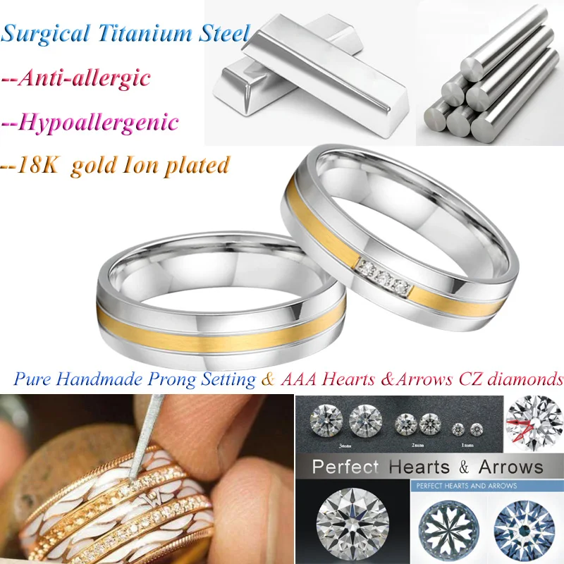 Золотое титановое кольцо для мужчин и женщин, 1 пара, для свадьбы, ...