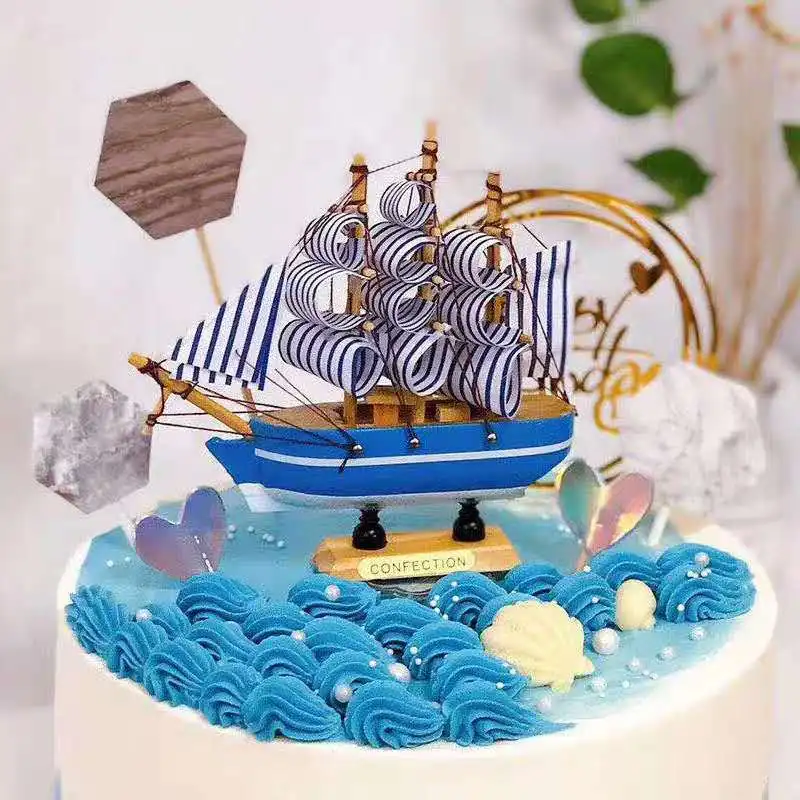Топперы для капкейков с лодкой, для детей, деревянные игрушки в виде парусной лодки, топперы для торта, подарки для детей на день рождения