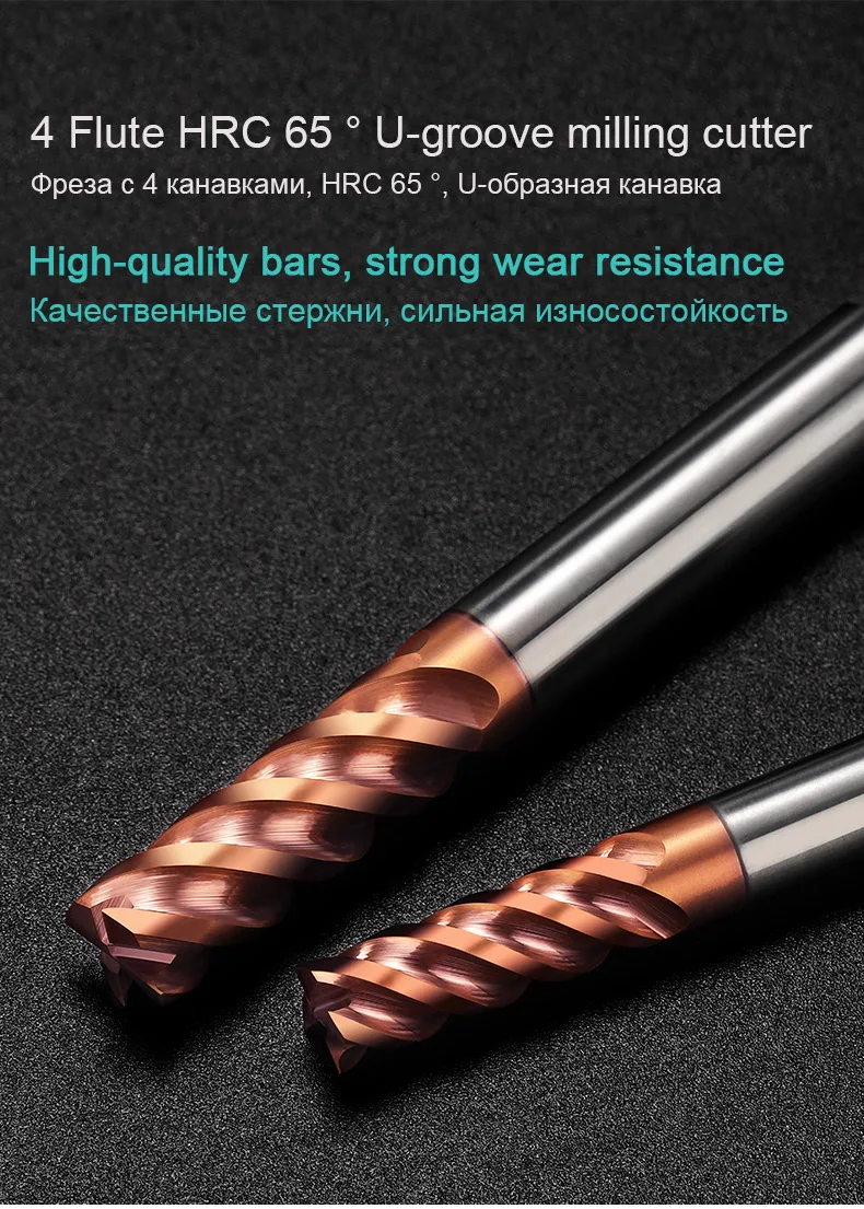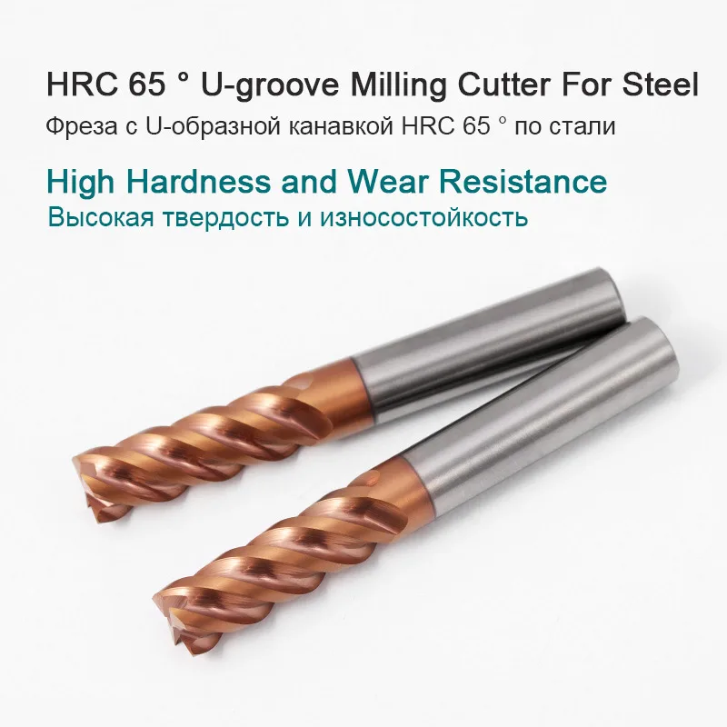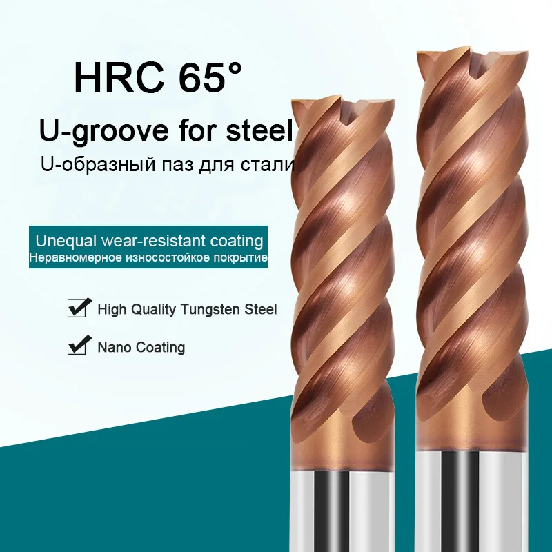 HRC 65 высокоэффективные Фрезы с ЧПУ, 4 канавки, вольфрамовые U-образные пазы, режущие инструменты, твердосплавные концевые фрезы для стали