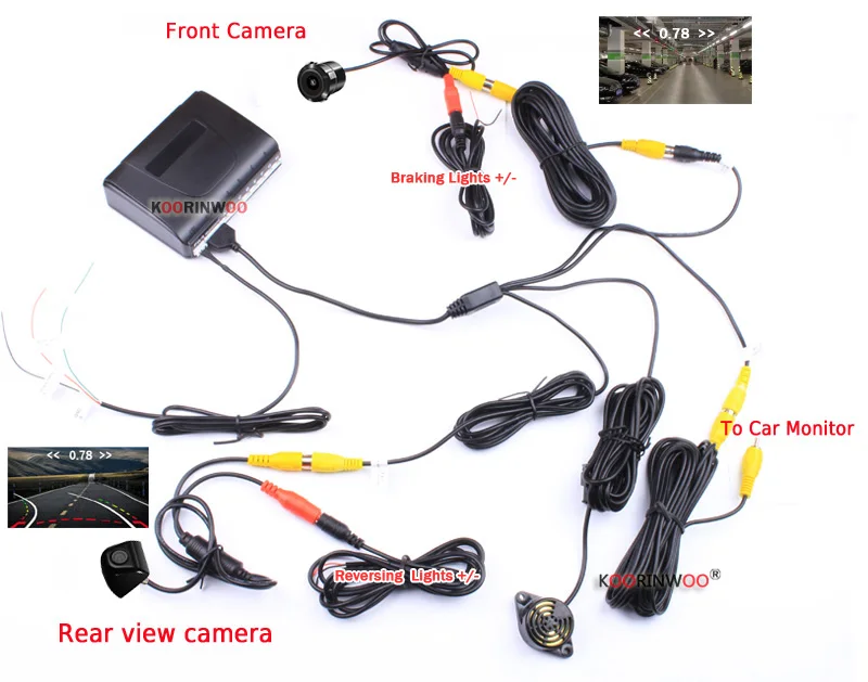 Парктроник Koorinwoo с двухъядерным процессором, автомобильные парковочные датчики, 8 видео RCA AV, динамическая траектория, направляющая камера, передние и задние автомобильные аксессуары