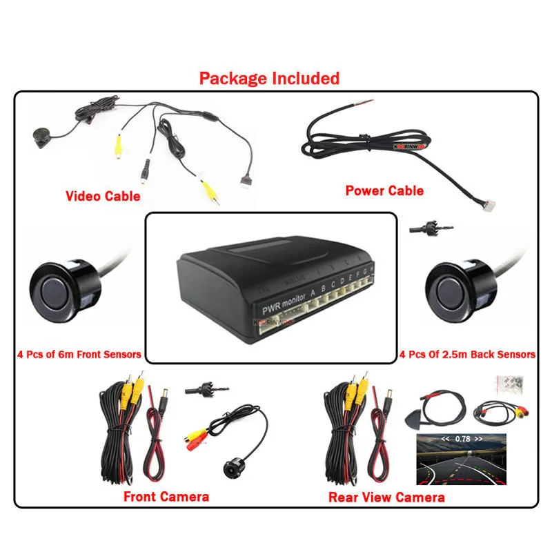 8 датчиков, двухъядерный, Автомобильная камера заднего вида, Система помощи при парковке, звуковая сигнализация. Изображение заднего хода автомобиля и расстояние фронтальной камеры могут отображаться на вашем DVD или экране