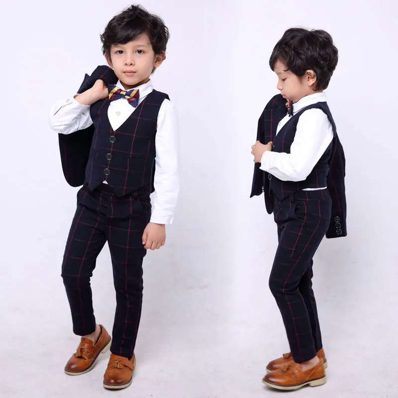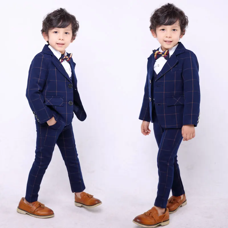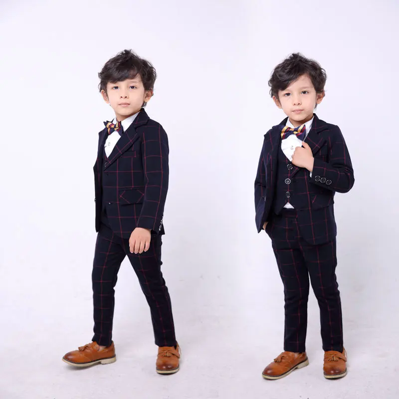 Одежда высшего качества рубашка для мальчиков, клетчатая куртка, жилет и штаны комплект одежды из 3 предметов с рисунком в стиле "Джентельмен" в Корейском стиле, детские костюмы на свадьбу, детское платье для выступлений