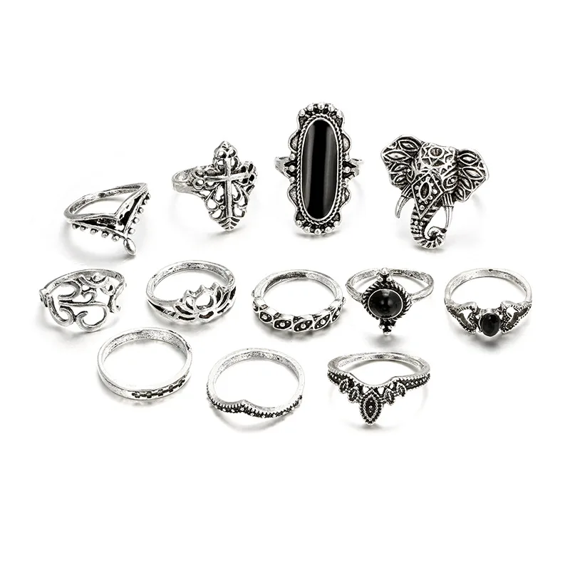 Набор Колец Tocona в винтажном стиле, цвет под античное серебро, яр...