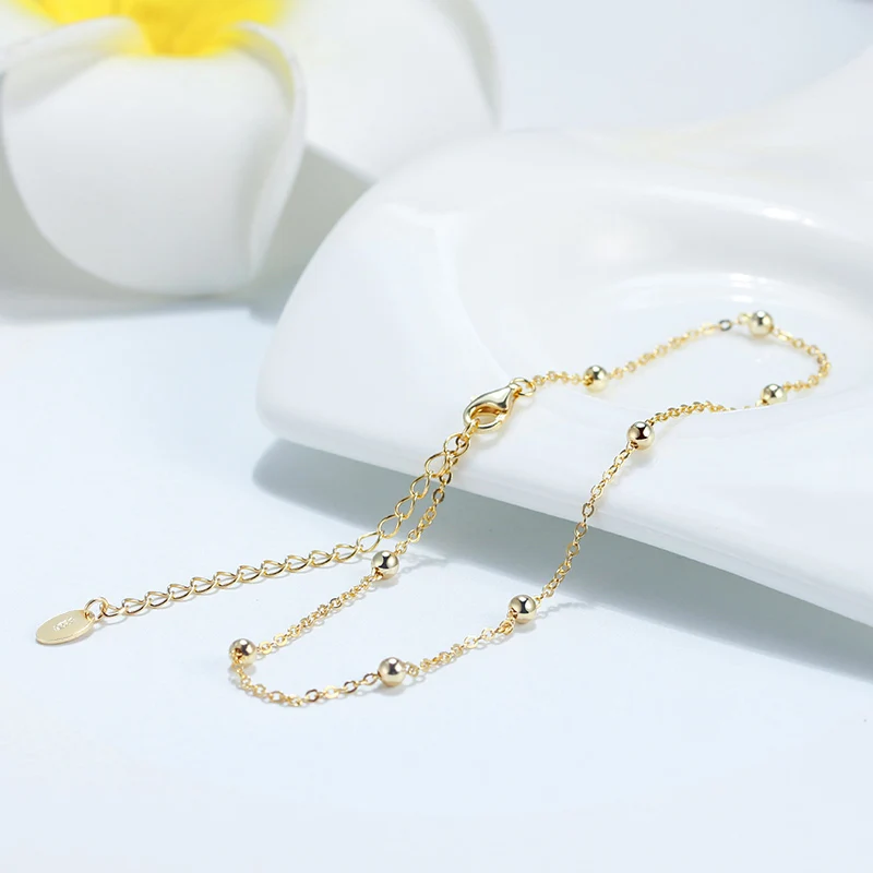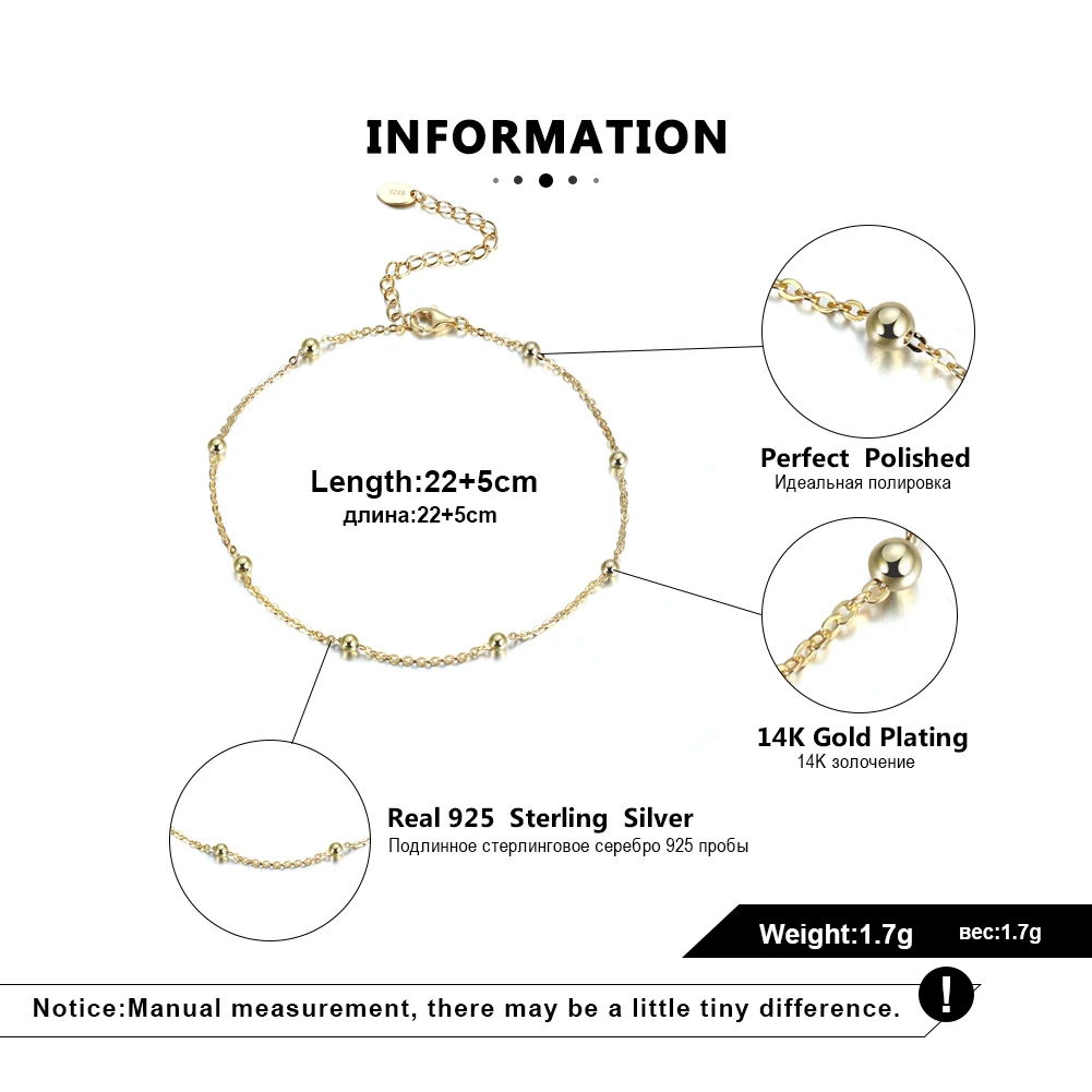 Для женщин Настоящее серебро 925 Eclipti ножные браслеты сереброзолото Цвет с 8 шт бусины на цепочка на ногу ювелирные изделия пляжный подарочный