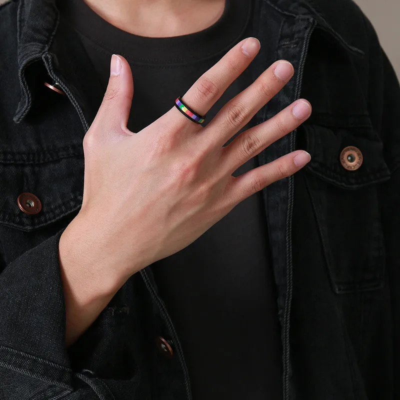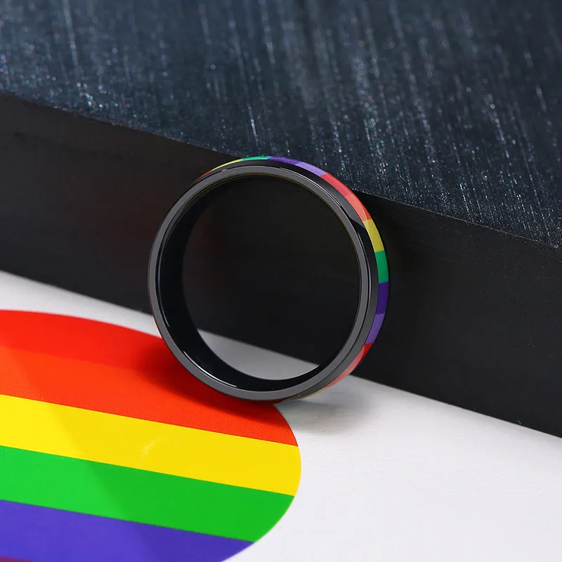 Кольцо ЛГБТ с эмалью, 6 мм, из нержавеющей стали
