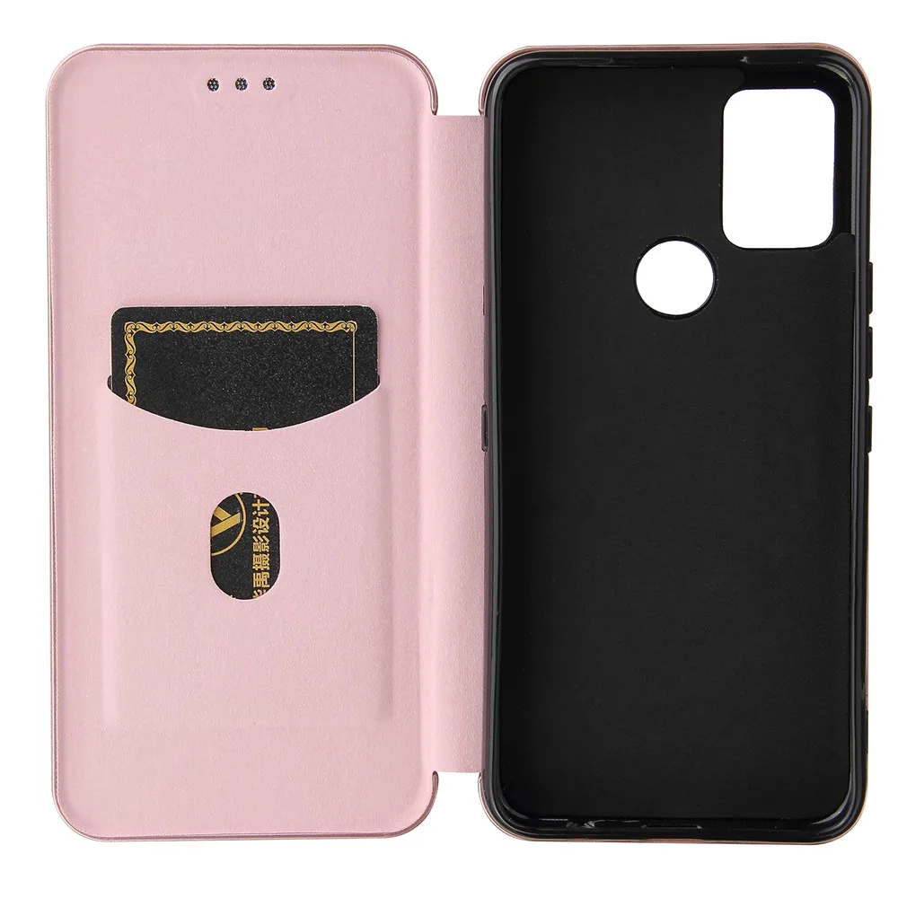 Магнитный чехол-книжка из углеродного волокна для Alcatel 1S 2021, ...