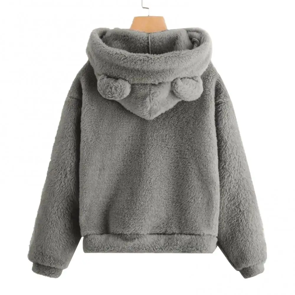 Женская осенне-зимняя Толстовка размера плюс, Повседневная однотонная Толстовка с длинным рукавом и капюшоном с кроличьими ушками, плюшевый теплый пуловер, толстовка