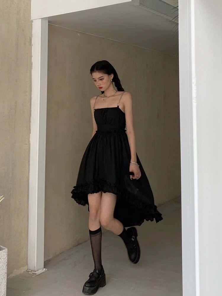 Новинка лета 2021, черное модное платье с асимметричными оборками, винтажное женское сексуальное облегающее платье без бретелек
