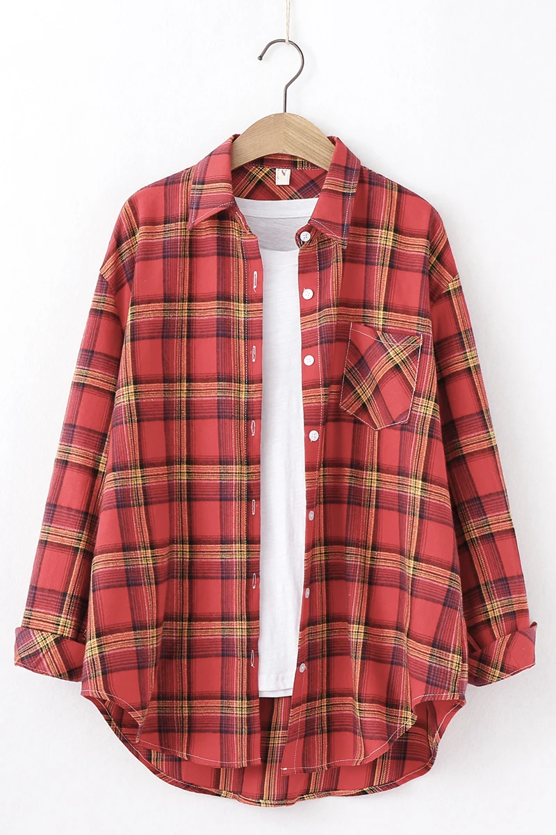 Свободная Повседневная стильная женская рубашка в желтую и красную клетку, новинка 2021, женские топы, рубашки с длинным рукавом, Изысканная одежда