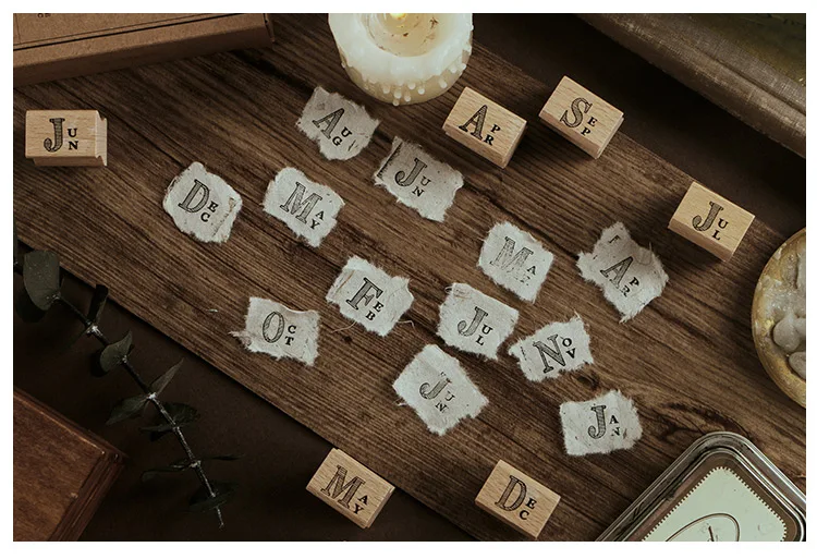 Деревянная посылка для скрапбукинга, с цифрами и месяцами