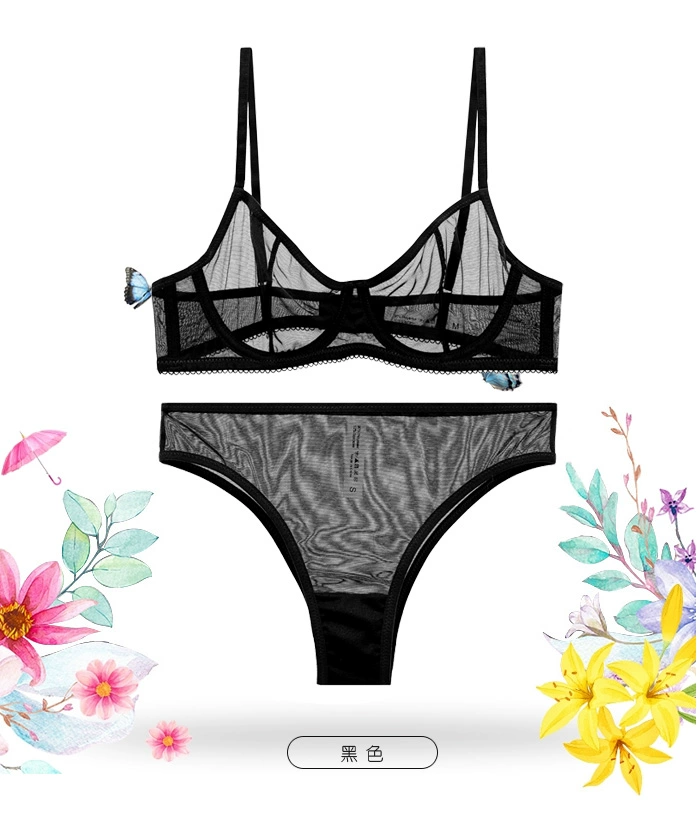 Соблазнительный собранный комплект с бюстгальтером, сетчатый прозрачный бюстгальтер с маленькой грудью и стальными кольцами, нижнее белье, бюстгальтер, стринги, Женский бесшовный комплект, Женский Бралетт с трусиками
