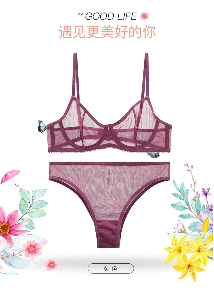 Сексуальный Набор бюстгальтеров с сеткой прозрачная маленькая грудь стальное кольцо женское белье бесшовный комплект Дамское белье с трусиками