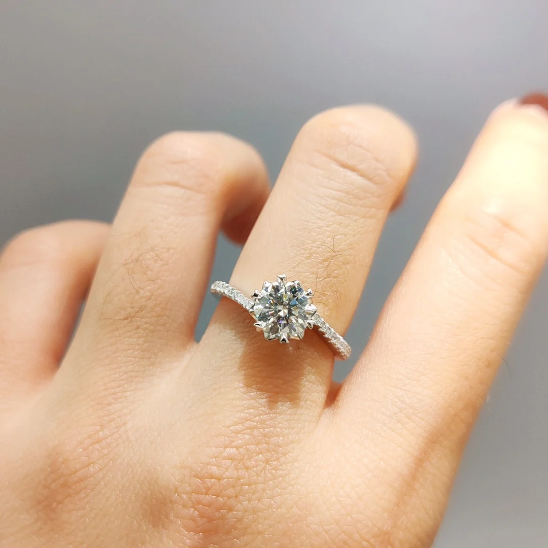 Inbeaut с покрытием 18-ти каратным белым золотом, отличный крой 1 компьютерная томография D Цвет пройти алмаз Тесты Муассанит кольцо-Снежинка 925 Серебряное обручальное кольцо ювелирные изделия