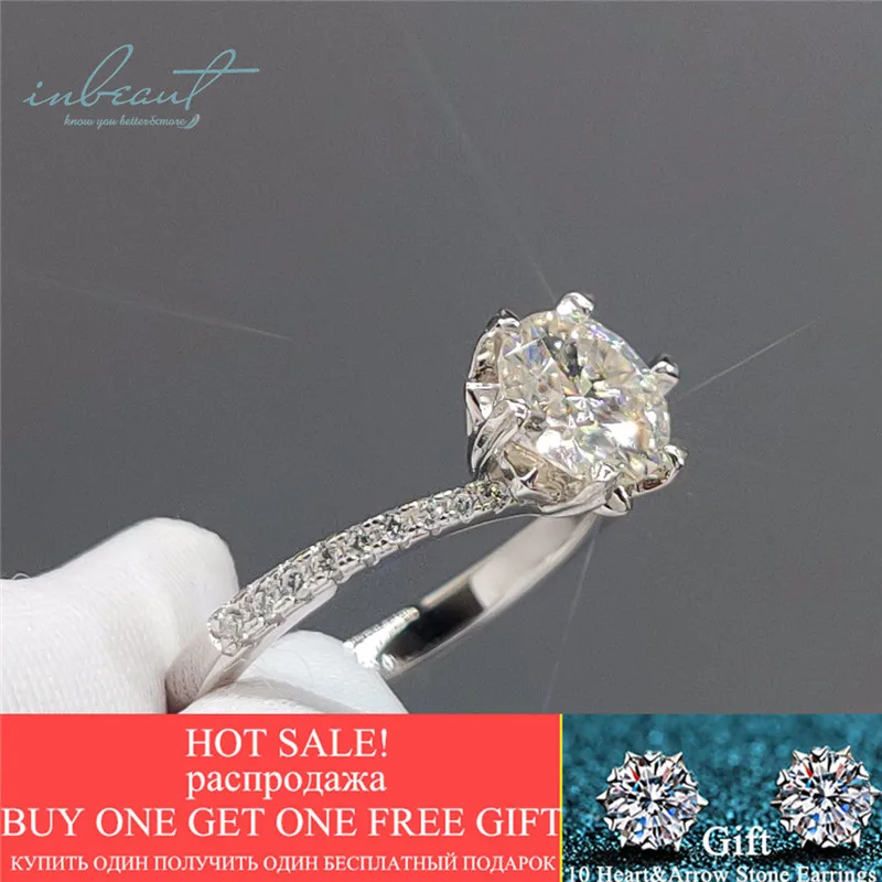 Круглое Сверкающее кольцо inbeaut с муассанитом, кольцо из 925 проб...