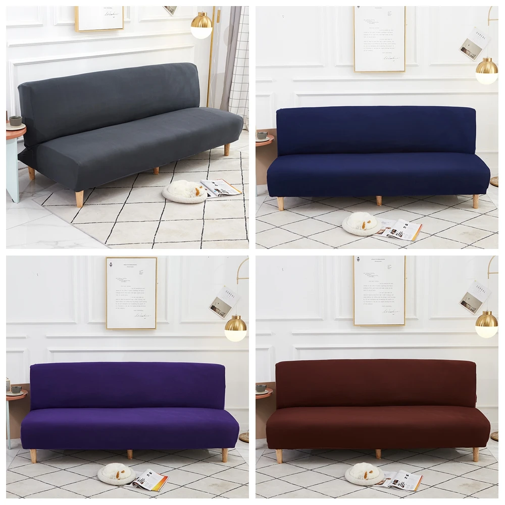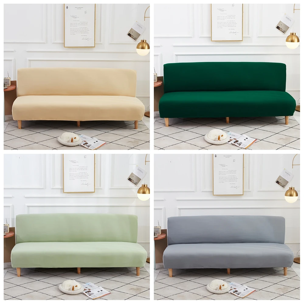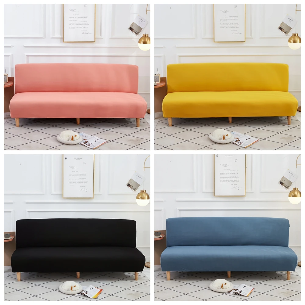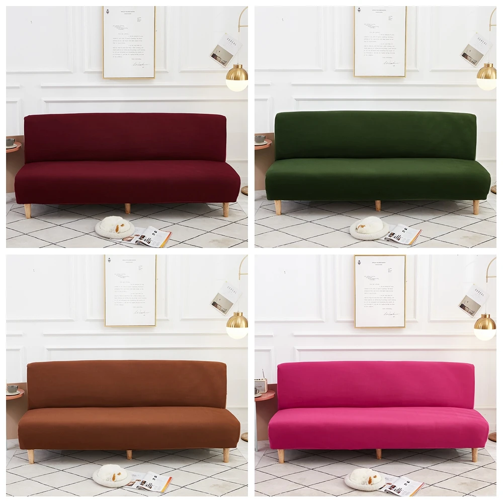 Однотонный складной чехол для дивана, чехол для кровати без подлокотника, из спандекса, эластичный декоративный чехол для сиденья, для гостиной