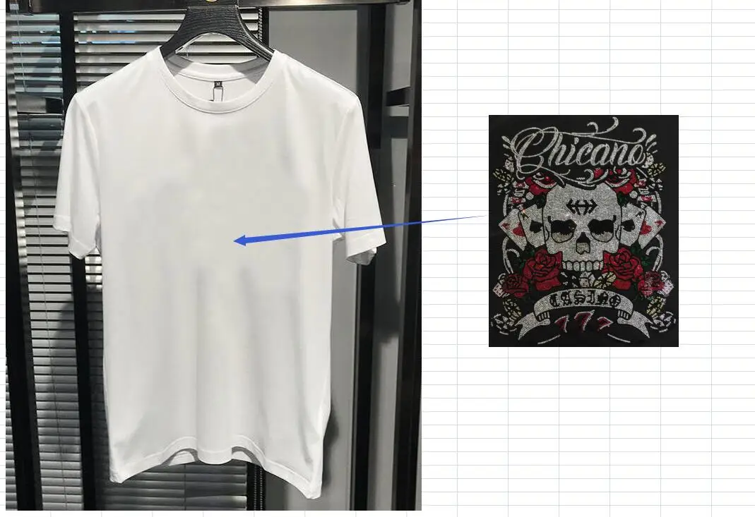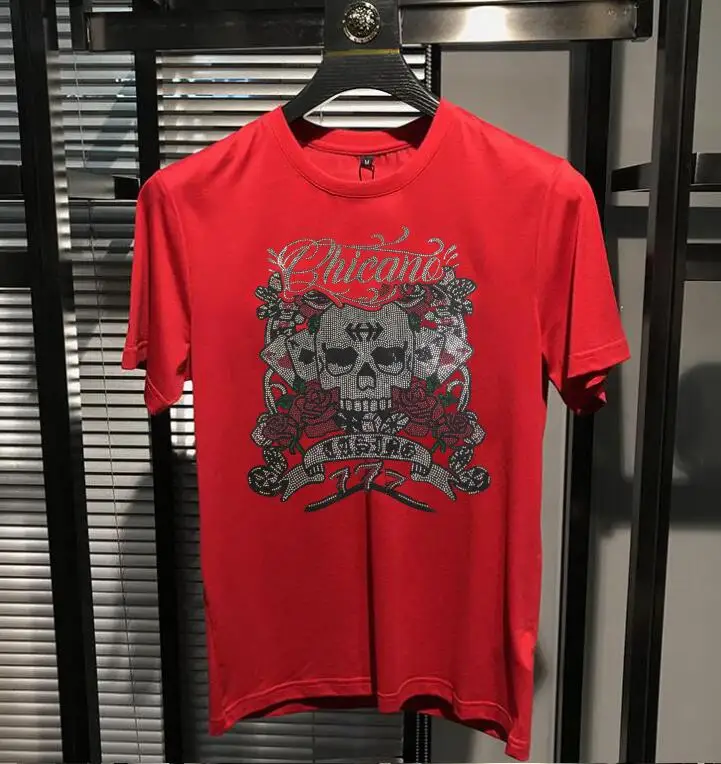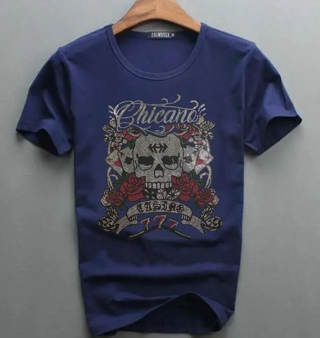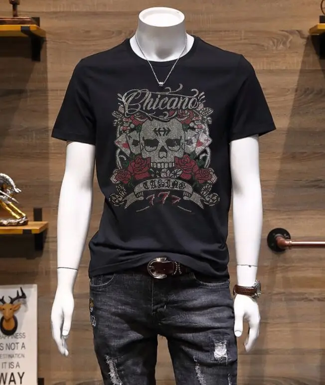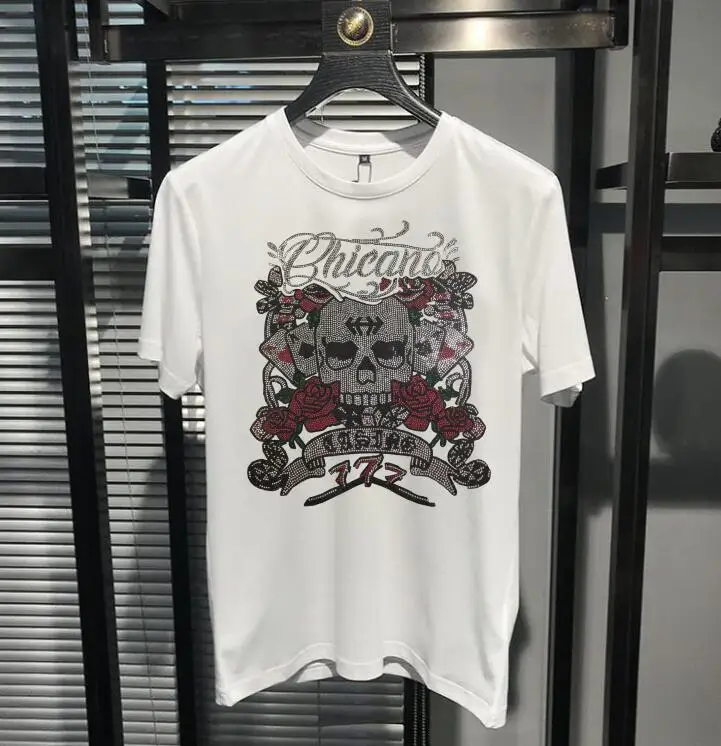 Дизайнерская крутая Летняя мужская футболка Стразы с цветочным и черепом из 100% хлопка с коротким рукавом Повседневная Летняя мужская футболка Прямая поставка