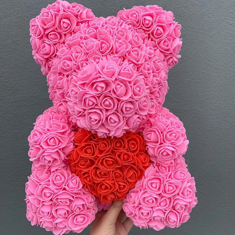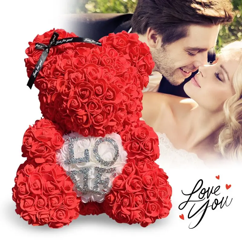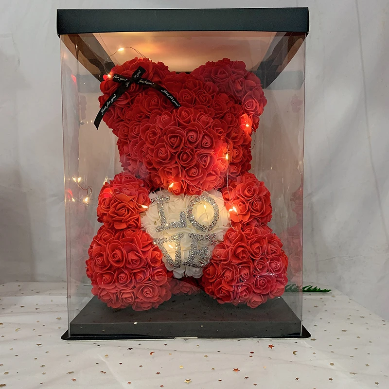 Прямая поставка, 40 см, плюшевый мишка розы, искусственные цветы, медведь розы из полиэтилена для женщин, украшение для дома на свадьбу, Рождество