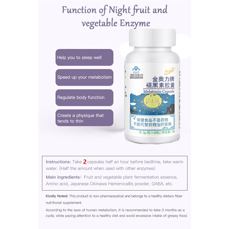 Возьмите 2 капсулы за полчаса до сна, возьмите теплую воду (Haif количество при использовании с другими ферментами)