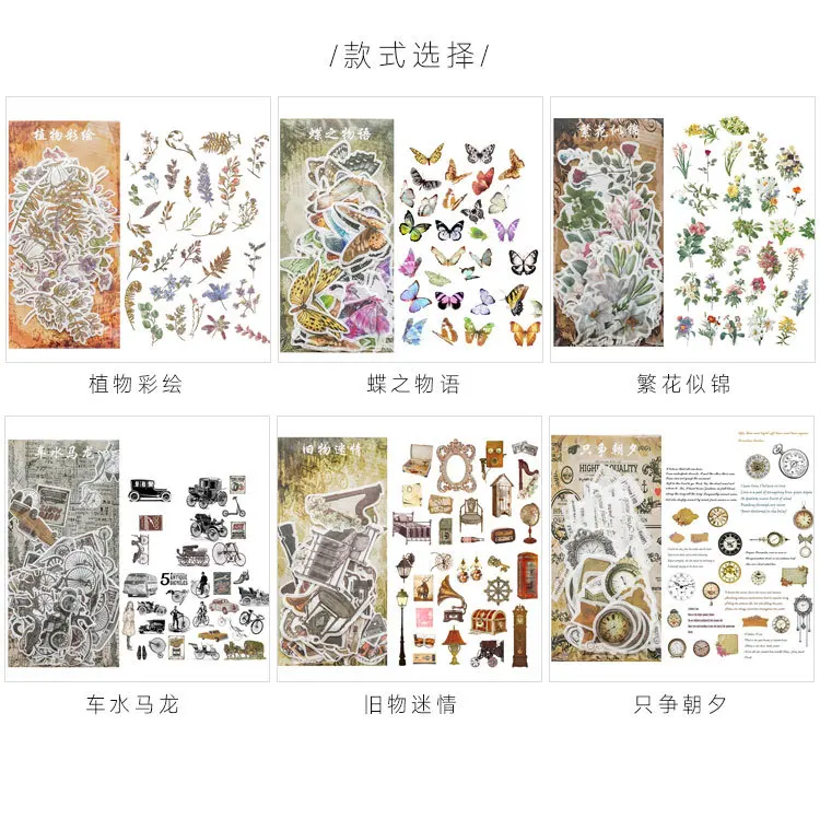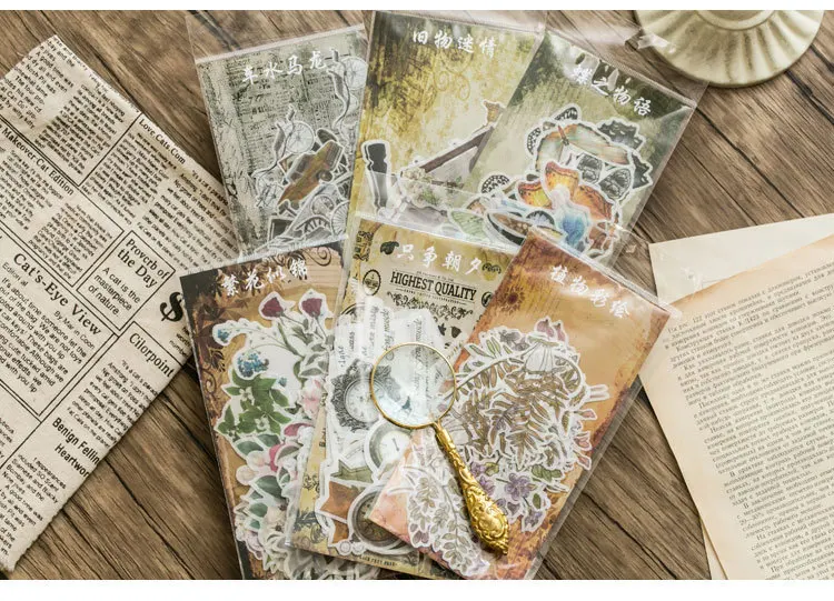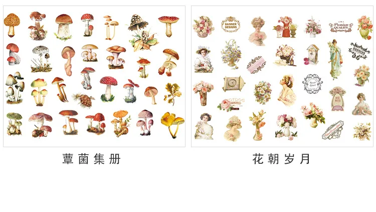 Винтажные наклейки Yoofun 60 шт.упак., наклейки в стиле ретро с цветами, грибами, церковными ярлыками для дневника, скрапбукинга, декоративные канцелярские принадлежности