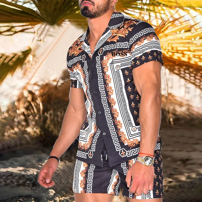 Лидер продаж, пляжный комплект в гавайском стиле, Мужской комплект с принтом в стиле хип-хоп, Летняя Повседневная рубашка с коротким рукавом и цветочным принтом, пляжный костюм из двух предметов для мужчин Se