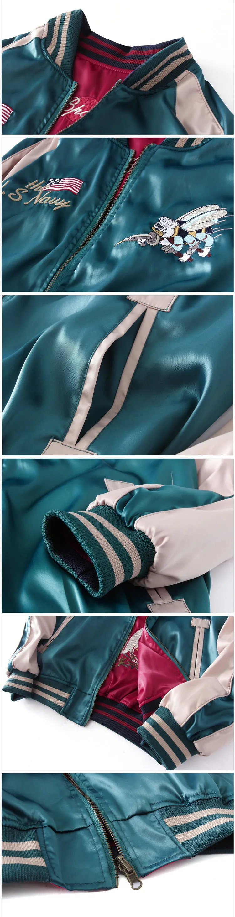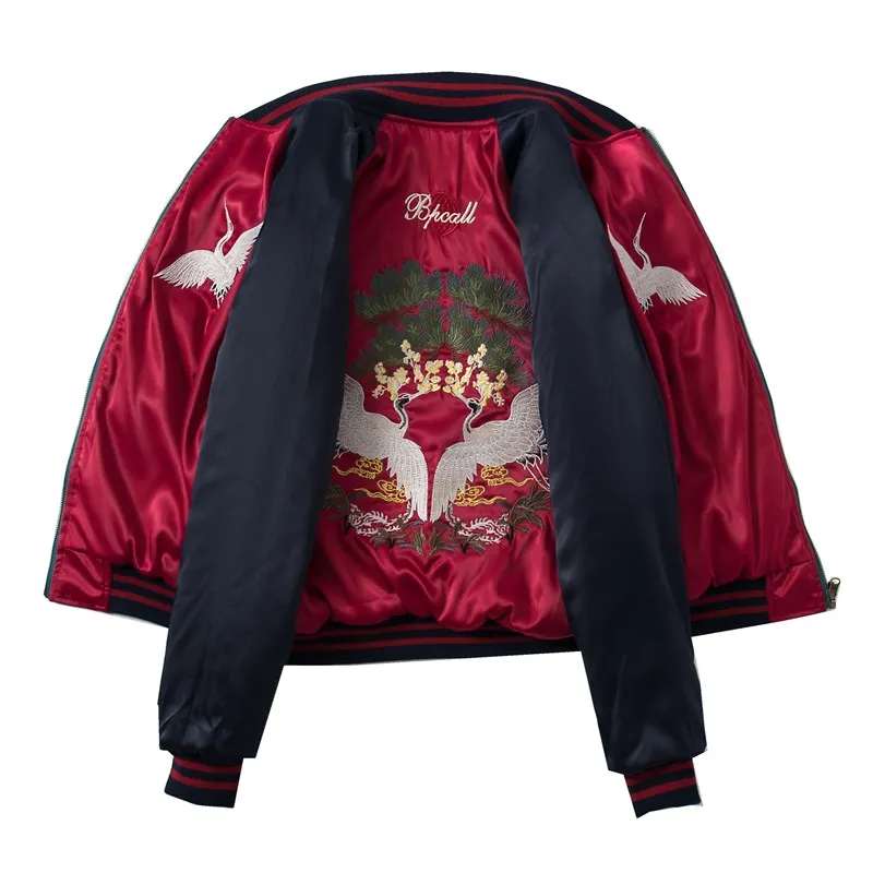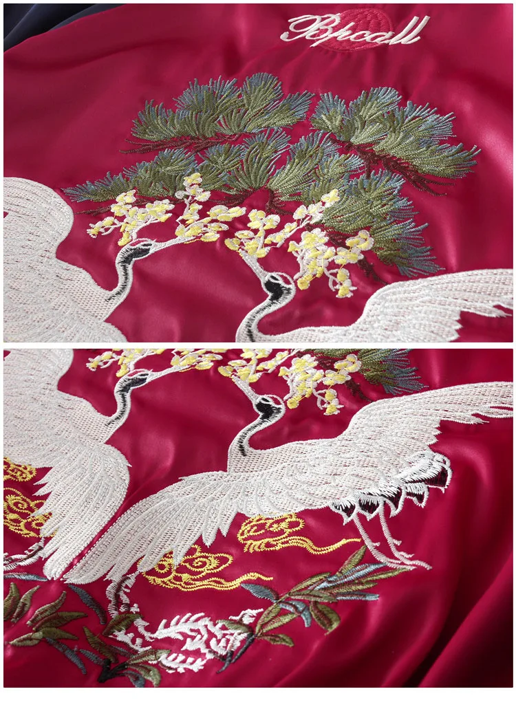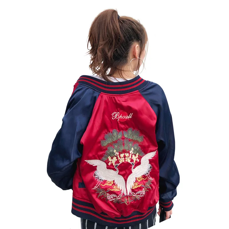 Двусторонняя куртка с вышивкой Yokosuka, однотонная Повседневная бейсбольная верхняя одежда с красным журавлем, весна-осень