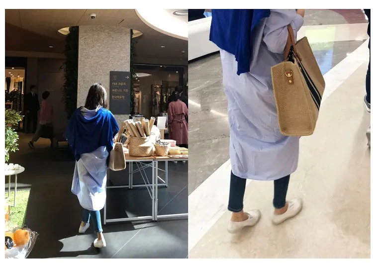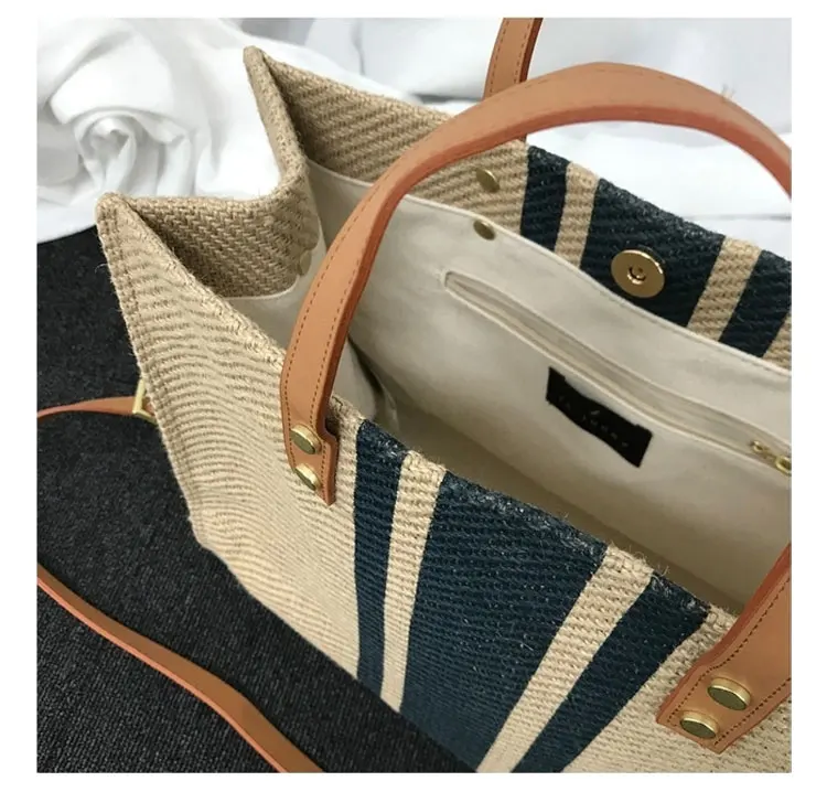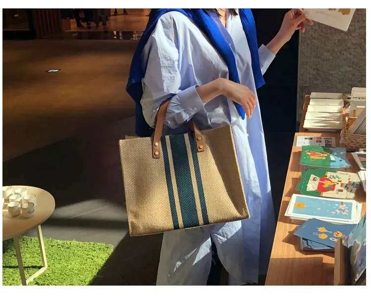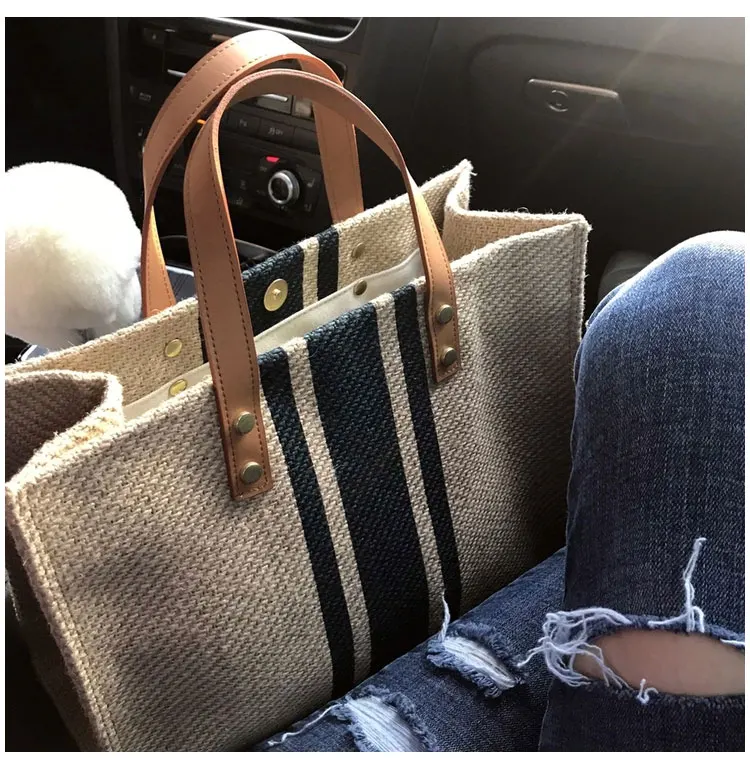 Простая модная Женская Полосатая Холщовая Сумка-тоут, вместительная...