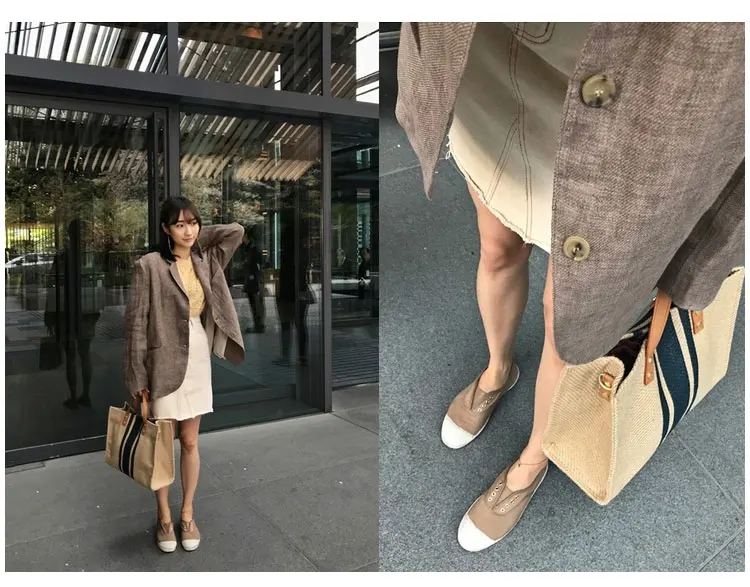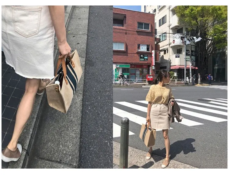 Простая модная вместительная дамская сумочка-тоут в винтажном стиле, портативный офисный деловой портфель в полоску для женщин в Корейском стиле