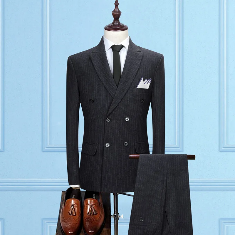 Мужские деловые приталенные смокинги в полоску для свадьбы, костюмы...
