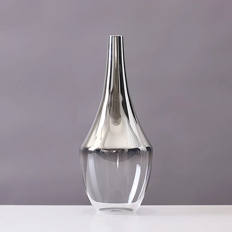 Скандинавская стеклянная ваза, серебряный градиент, высушенный Гальванизированный цветочный вазы декоративные для дома, горшок для растений небольшого калибра, подарок для мебели