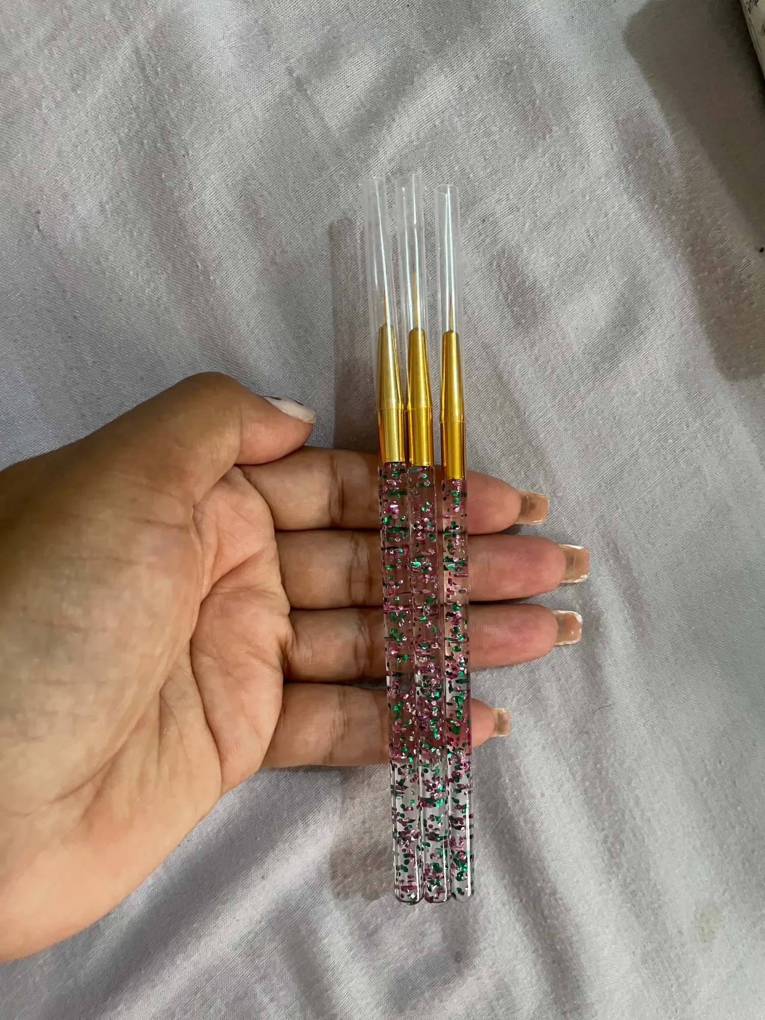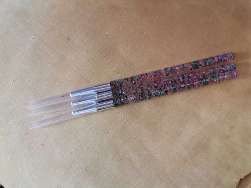 Не ожидала такого хорошего качества заказ дошел быстро кисти качественные ими легко рисовать и делать декор на ногтях, а то что они безумно красиво блестят я молчу можно целый день вертеть ими и наслаждаться этой прелестью