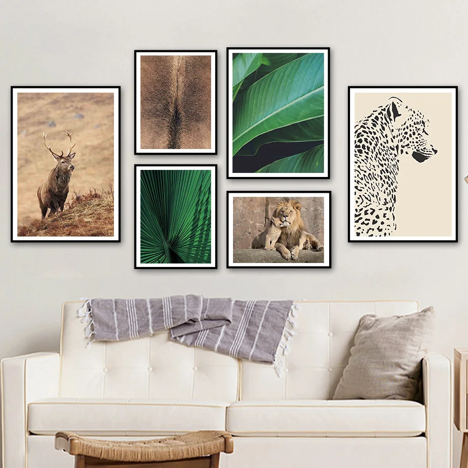 Олень Леопард Пальма банан лист животное настенная Картина на холсте скандинавские постеры и принты настенные картины для декора гостиной