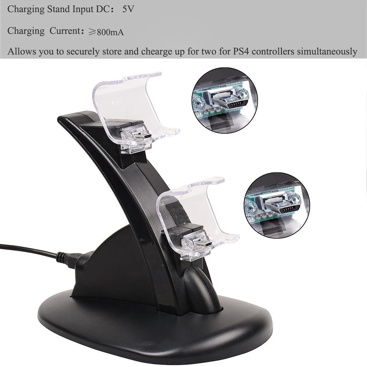 Двойная док-станция для зарядного устройства PS4 позволяет безопасно хранить и заряжать два контроллера PS4 одновременно Полная зарядка может быть завершена в течение 3 часов при зарядке одного контроллера; Полная зарядка до двух контроллеров одновременно в течение 4 часов Защита от перезарядки/перегрева/перегрузки по току/перенапряжения/короткого замыкания/перезарядки обеспечивает безопасную и прочную зарядку контроллера PS4 Это двойное зарядное устройство обеспечивает простой способ зарядки и хранения вашего PS4 / PS4 Pro / PS4 Slim контроллера. Идеально подходит для экономии места, чтобы хранить контроллеры в зарядном устройстве, когда вы не играете Съемная подставка для удобного хранения и переноски Технические характеристики Светодиодный индикатор: красная зарядка Светодиодный индикатор: полностью заряженный синий Встроенное защитное устройство: никогда больше не заряжать контроллер PS4 даже заряжать его на ночь Входное напряжение: 5 В постоянного тока 1000мА Выходное напряжение: DC 500-1000MA Время зарядки: 2-4 часа Размеры: 150x110x125 мм/5,91 "x 4,33" x 4,92" Посылка включает в себя: 1 Зарядная Станция контроллера1 х USB кабель