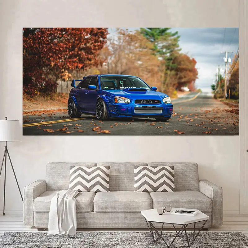 Картина без рамы на холсте с изображением синего спортивного автомобиля, осенней дороги, для украшения гостиной, художественные плакаты и принты