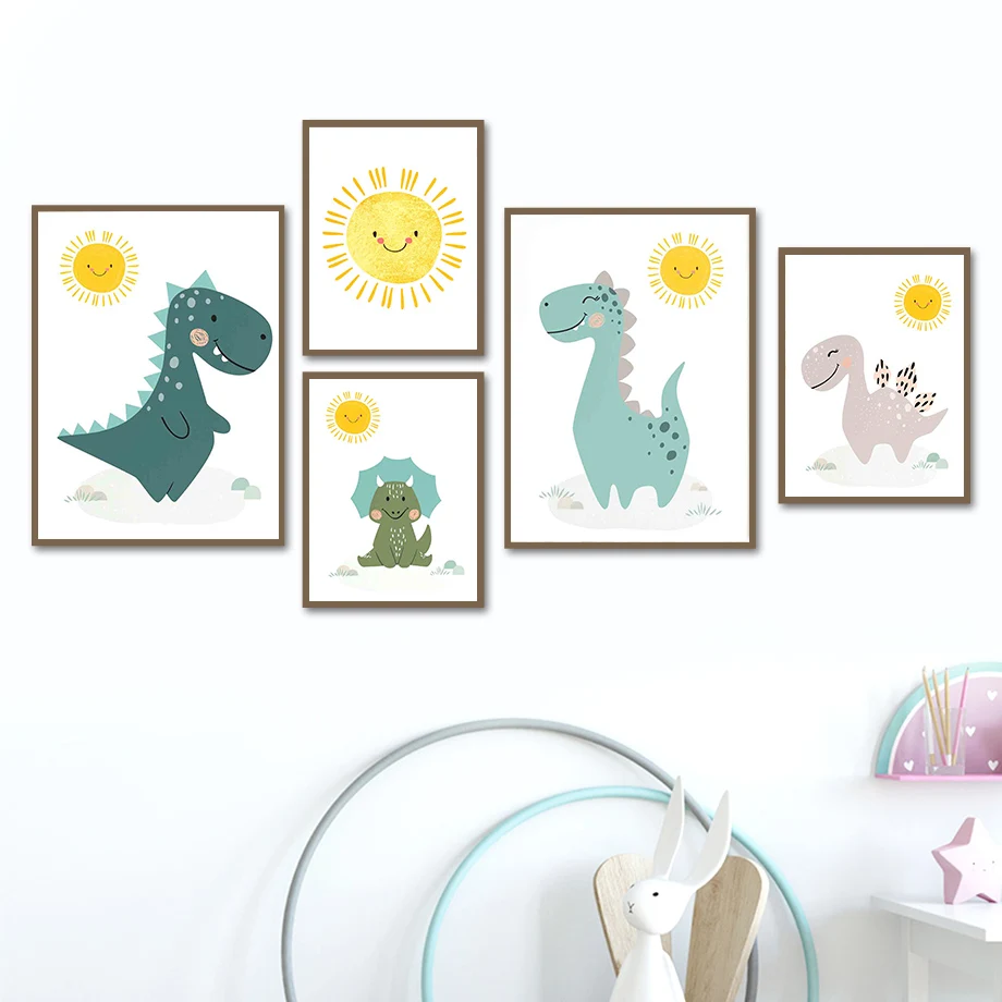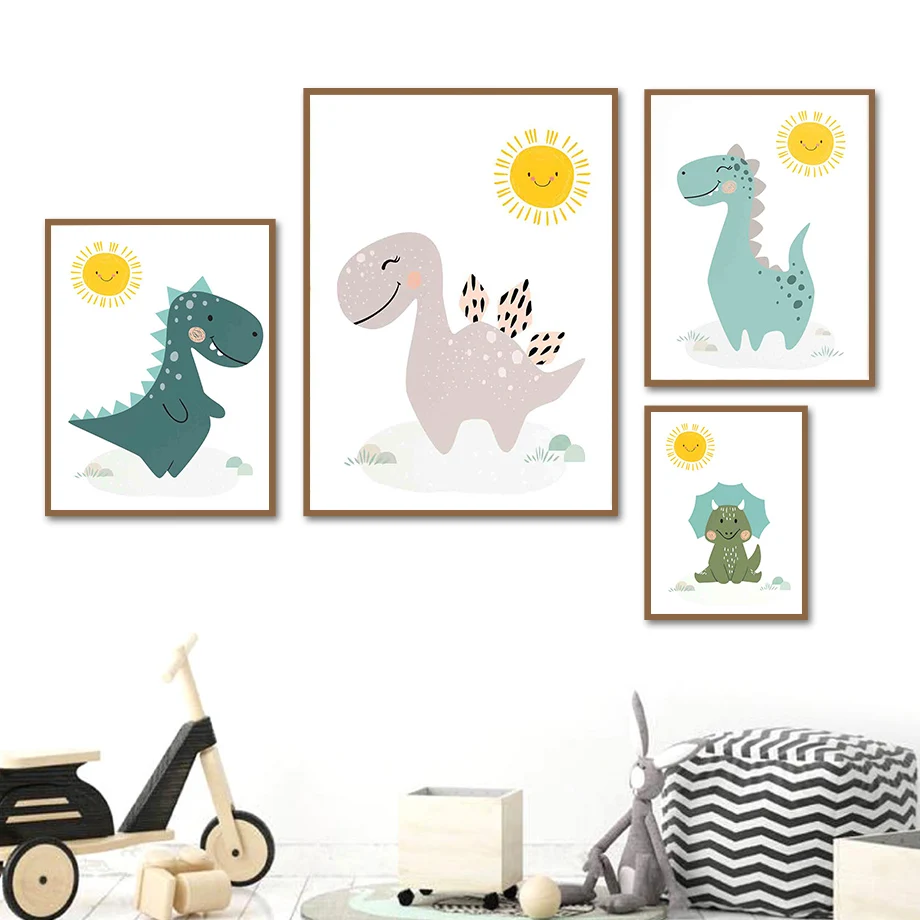 Мультяшный динозавр, Трицератопс, тираннозавр, настенная Картина на...