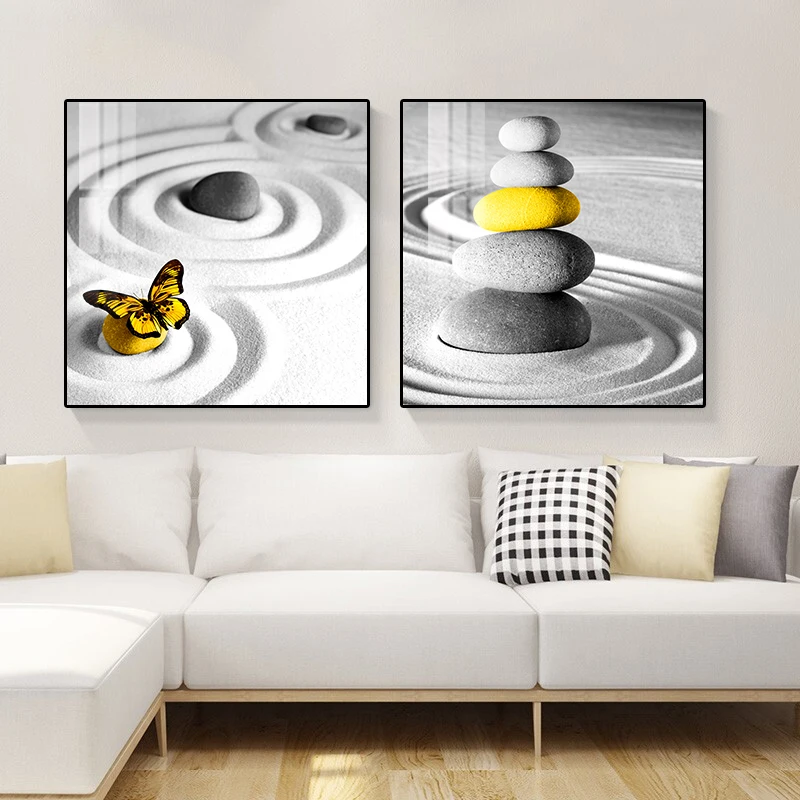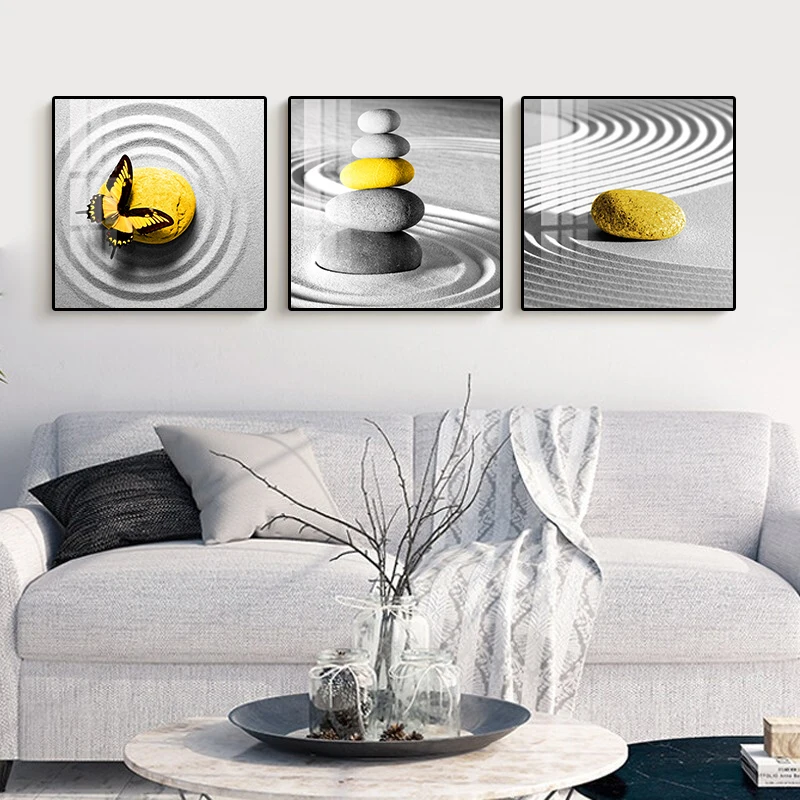 Настенная картина с черным желтым камнем, современный настенный постер в скандинавском стиле, украшение для гостиной и дома