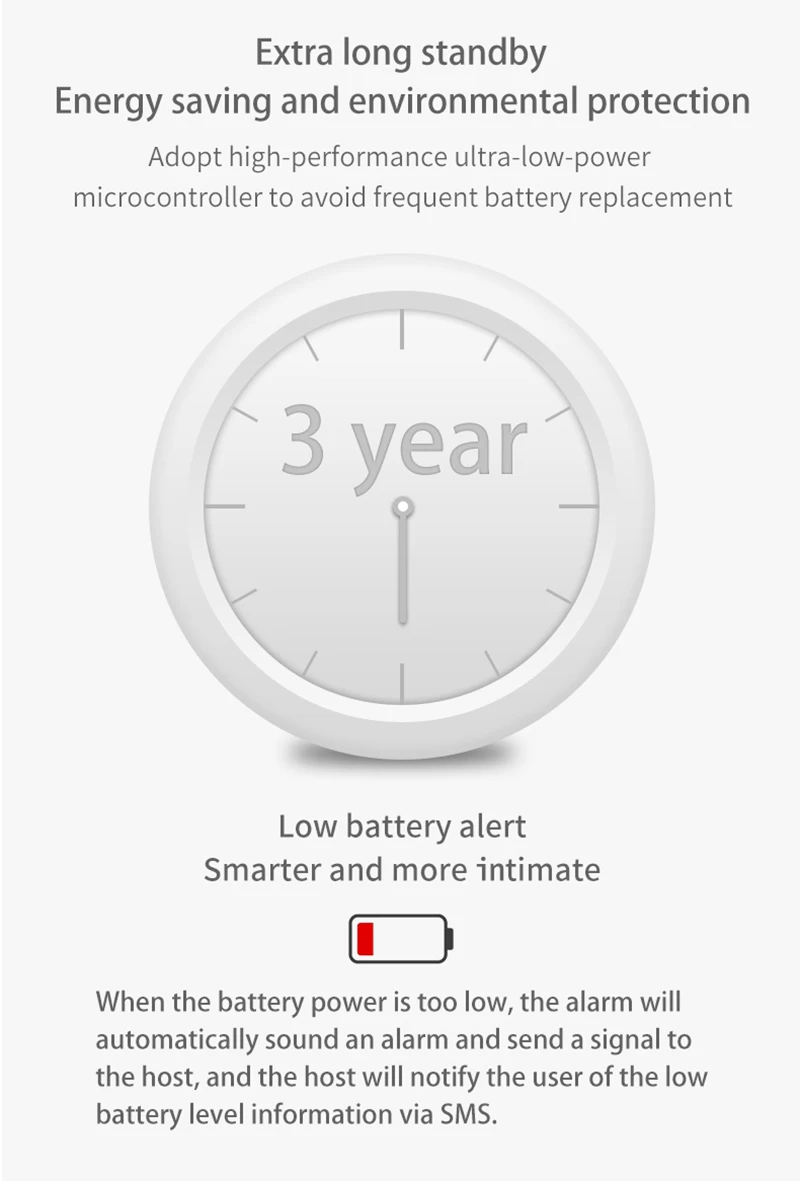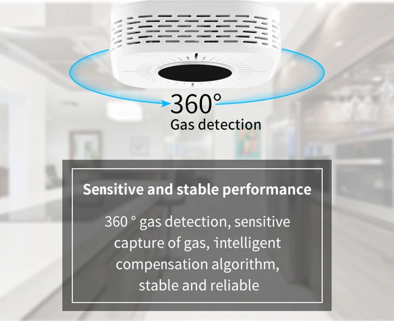Независимая сигнализация (85 дБ сирена, мигающий кольцевой индикатор)Подключение к хост-сигналуБеспроводная передача сигнализации на мобильный телефонПри обнаружении газа, он немедленно отправит беспроводной сигнал хосту, и хост будет автоматически набрать телефон, отправить текстовое сообщение или будильник приложения, чтобы уведомить пользователяПри обнаружении газа, он немедленно отправит сигнал тревоги и светильникСигнал для напоминания пользователямЧувствительный и стабильный, 360 ° обнаружения
