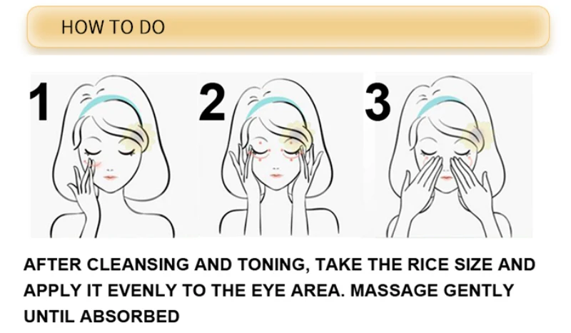Способ применения: после очищения и тонизирования нанесите необходимое количество на область вокруг глаз после нанесения на область вокруг глаз. Мягко массируйте до полного впитывания.