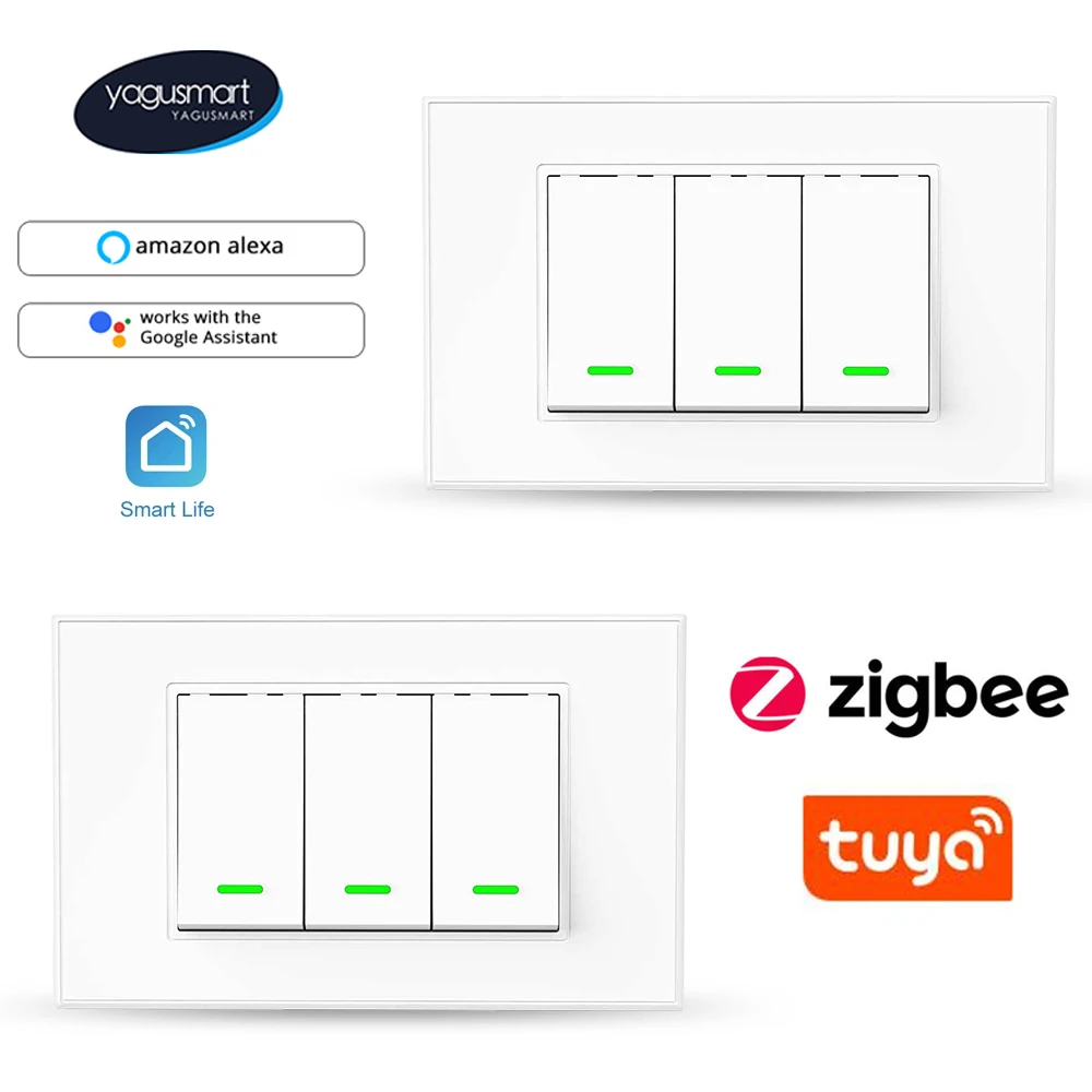 Умный кнопочный переключатель Yagusmart Tuya Zigbee, переключатель с нейтральными клавишами, управление через приложение Alexa Google Home Zigbee2MQTT