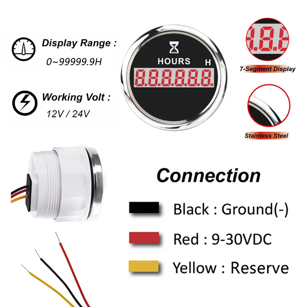 Цифровой счетчик часов, водонепроницаемый, 52 мм, с красной подсветкой